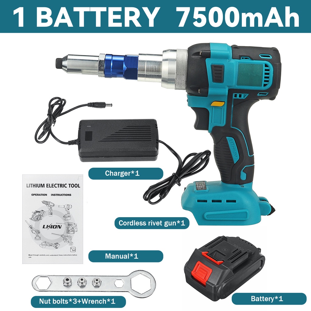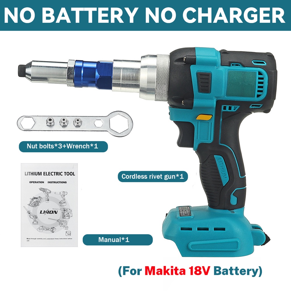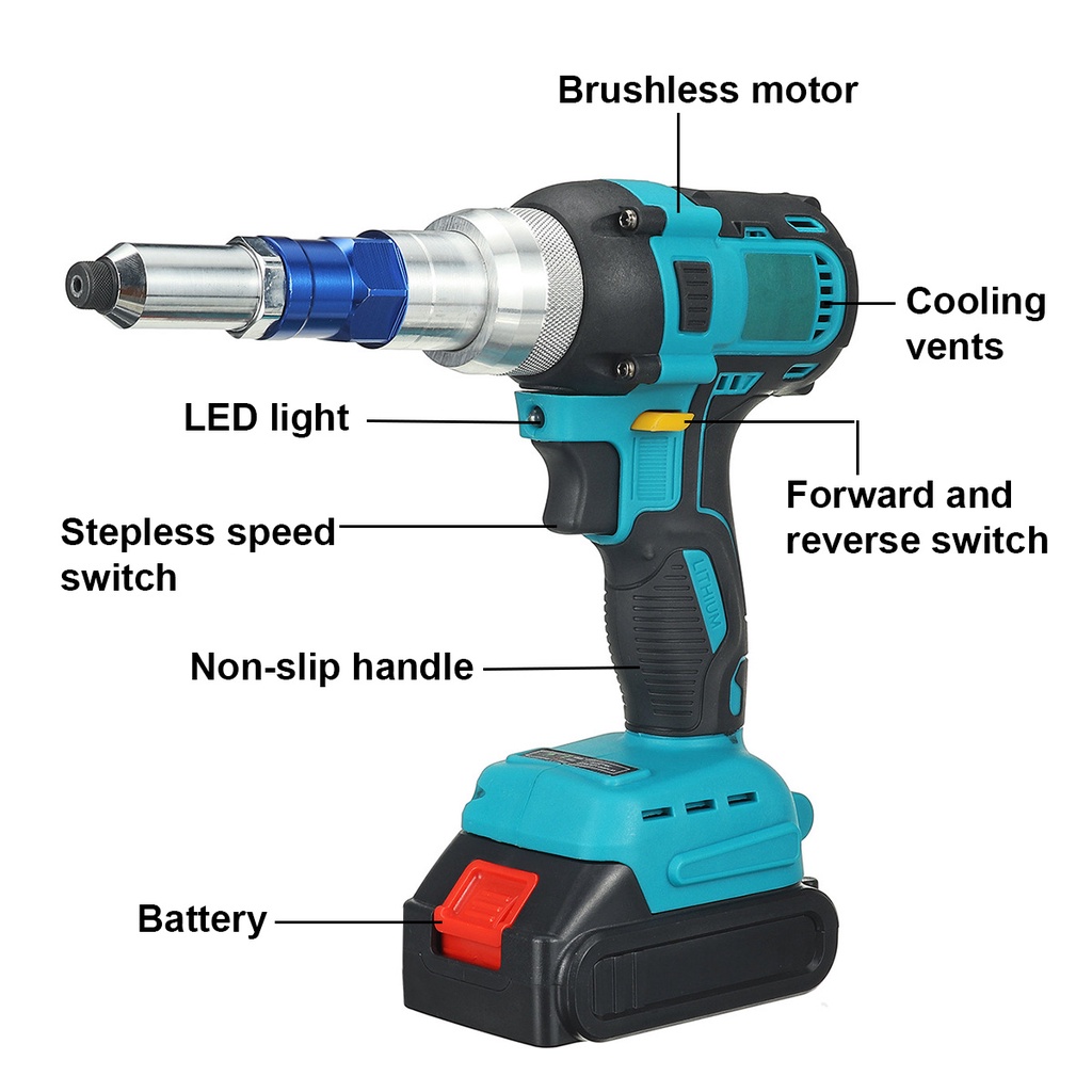 2.4-5mm Brushess Electric Rivet Guns Drill Riveting Tool Cordless Rivet Nut Guns Screwdriver For 18V Battery 10000N
