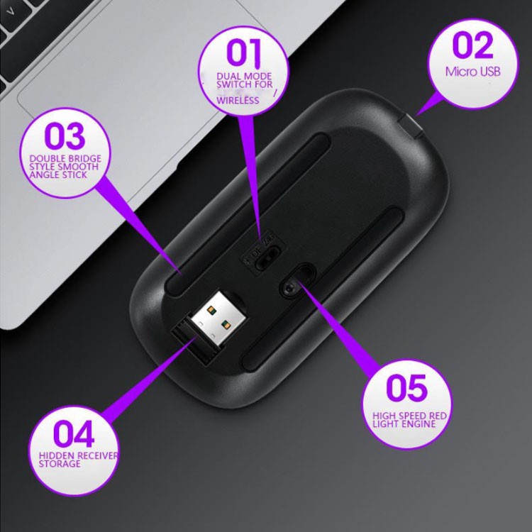 2.4G Rechargeable Office Silence Wireless Mouse (5 Color)