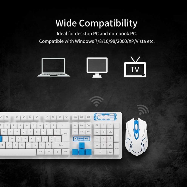 2.4G Wireless Keyboard and Optical Mouse Combo Suspended Keycap Adjustable Holder 3D Mouse for Office Work Game(Black)