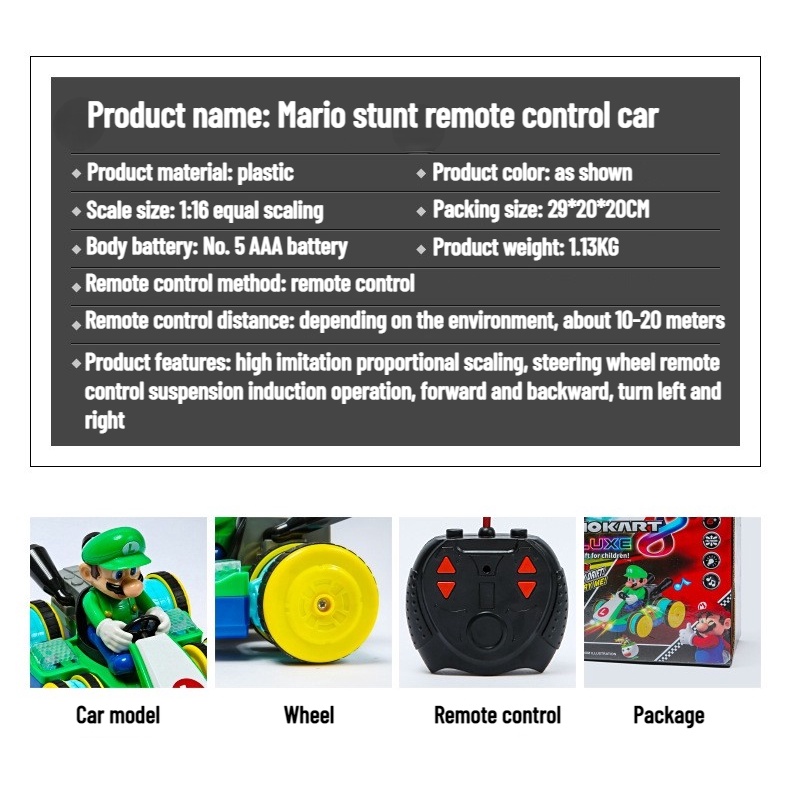 2.4G four-way remote control car stunt car 2 super mario lights and music Mario kart racing