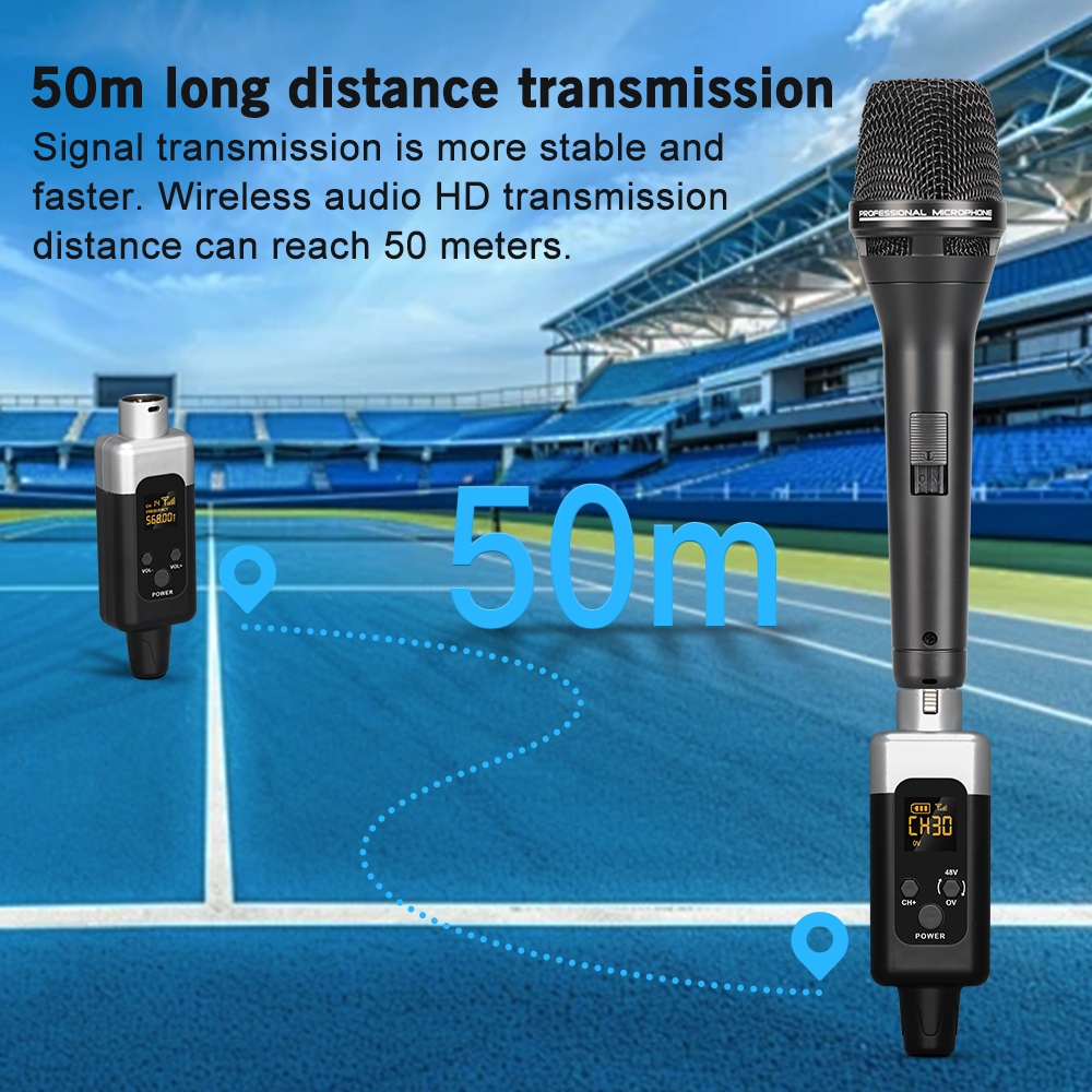 2.4Ghz Wireless Microphone System Transmitter Receiver 0/48V for Dynamic Condenser Mic Instrument