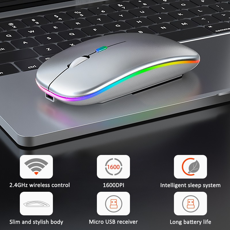 2.4Ghz Wireless Rechargeable Bluetooth Mouse Multi-color & silent design, suitable for PC, Laptop