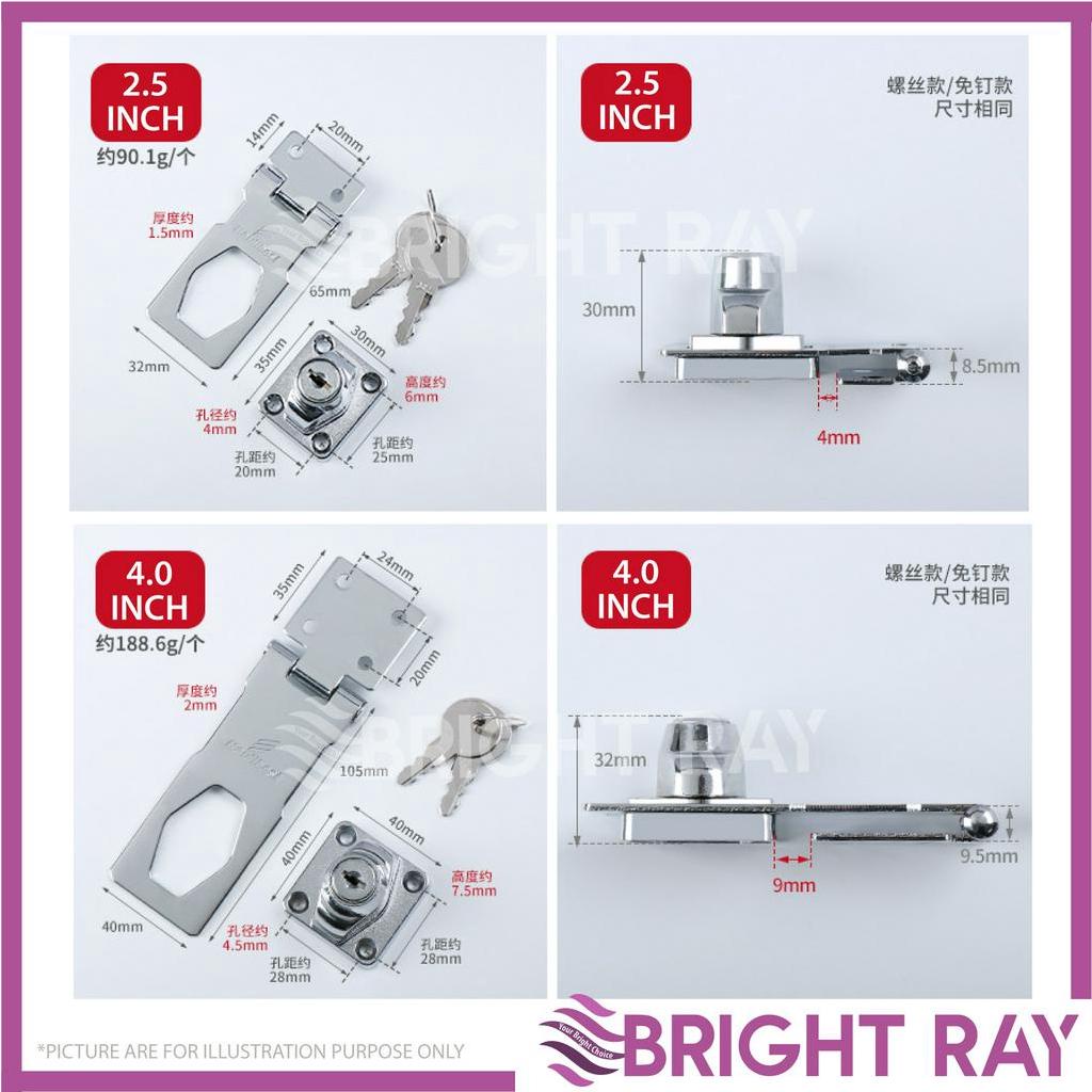 2.5"/ 3"/4" Safety Hasp with LOCK KEYED Locking Hasp for Small Doors and Cabinets Chrome Plated Hasp Door Lock Latch