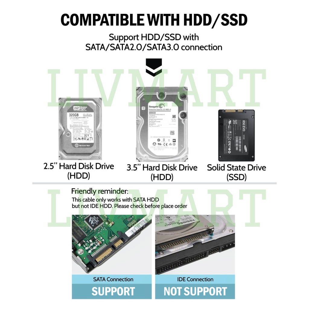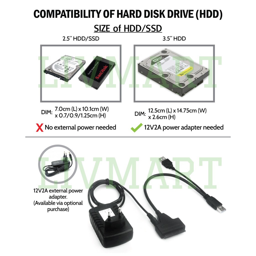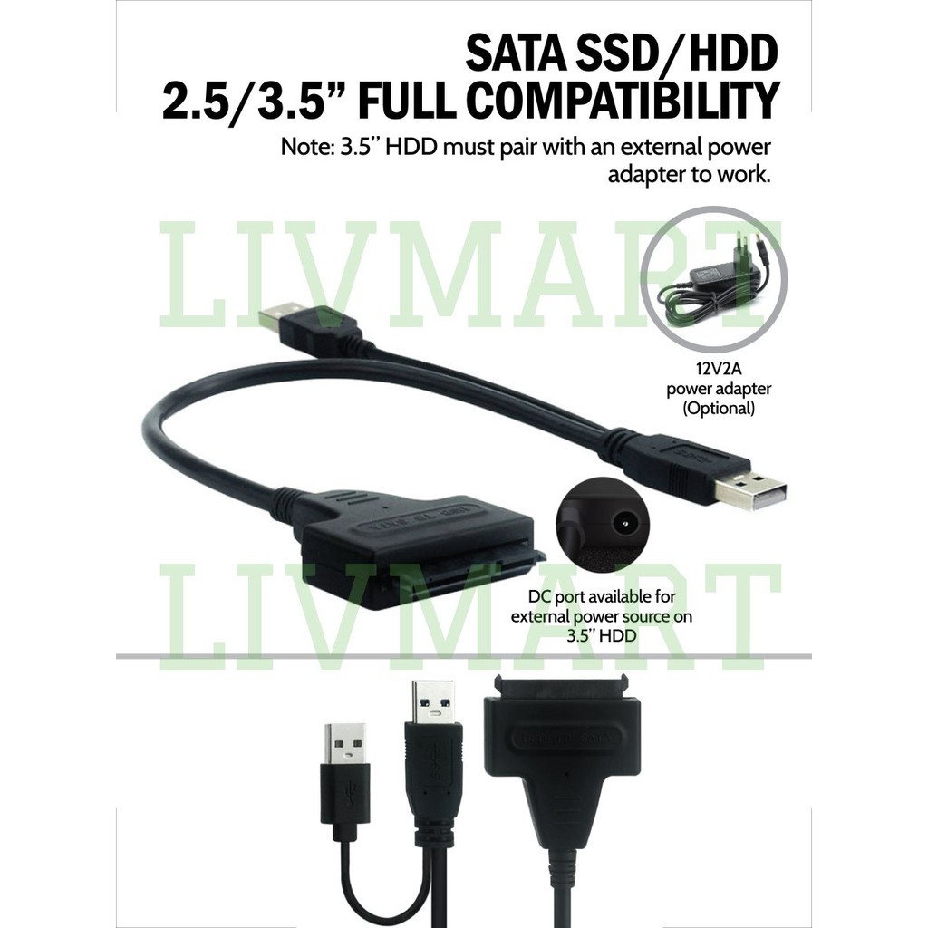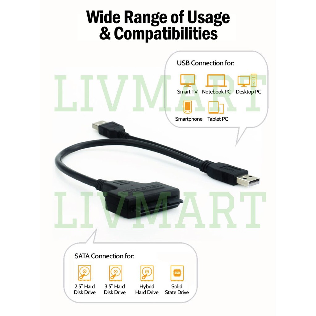 2.5 3.5 Inch 2.0 USB to SATA Cable Hard Disk Drive HDD Solid State Drive SSD 22 Pins to Adapter Connection Data Cable