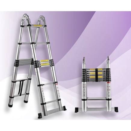 2.5M x 2.5M Aluminium Telescopic Pole Ladder Multi-Purpose Extendable Folding Ladder With 16 Steps