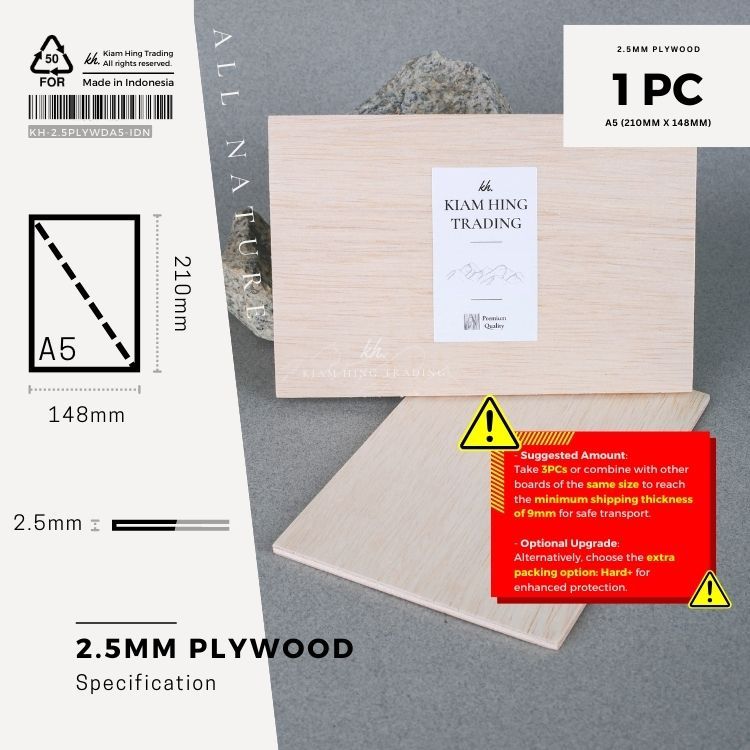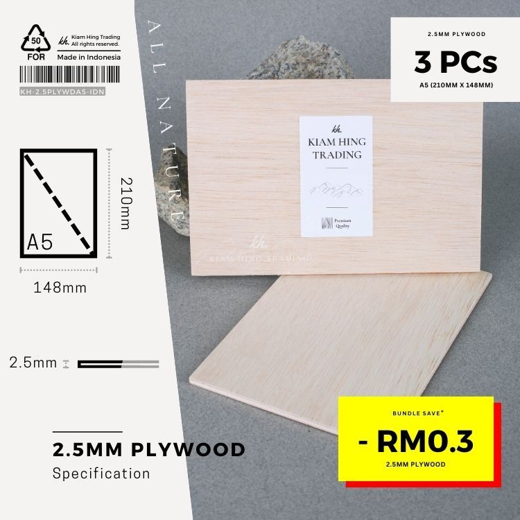 2.5mm Plywood (A5) DIY board sheet | timber panel | Playwood | Papan laser | kayu | Kiam Hing