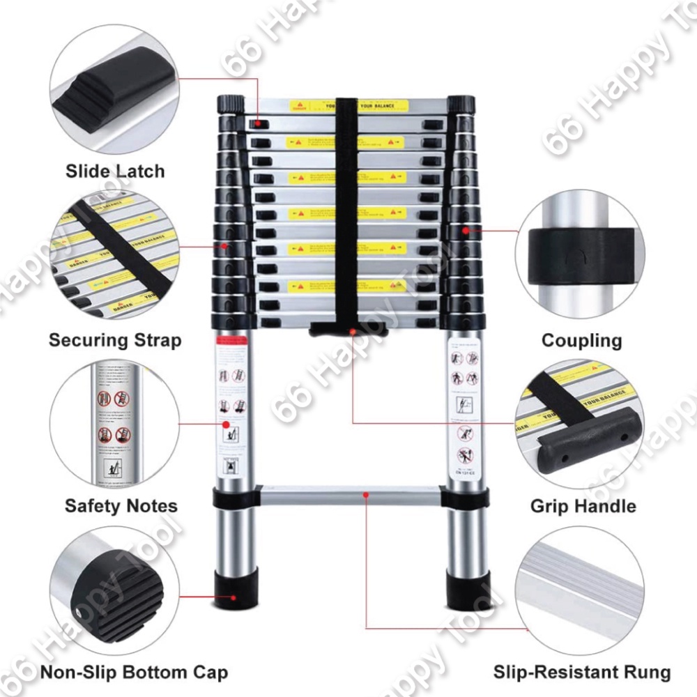 2.9m / 3.8m / 4.1m / 5m Single Sided Extendable Telescopic Aluminum Ladder Lightweight Foldable Aluminium Ladders Tangga