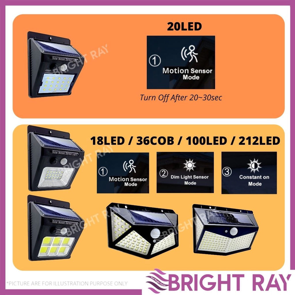 20/18/36/100/212 LED COB 4 Sided 3 Modes Solar light Motion Sensor PIR Light Wide Angle Waterproof Outdoor Solar Lampu