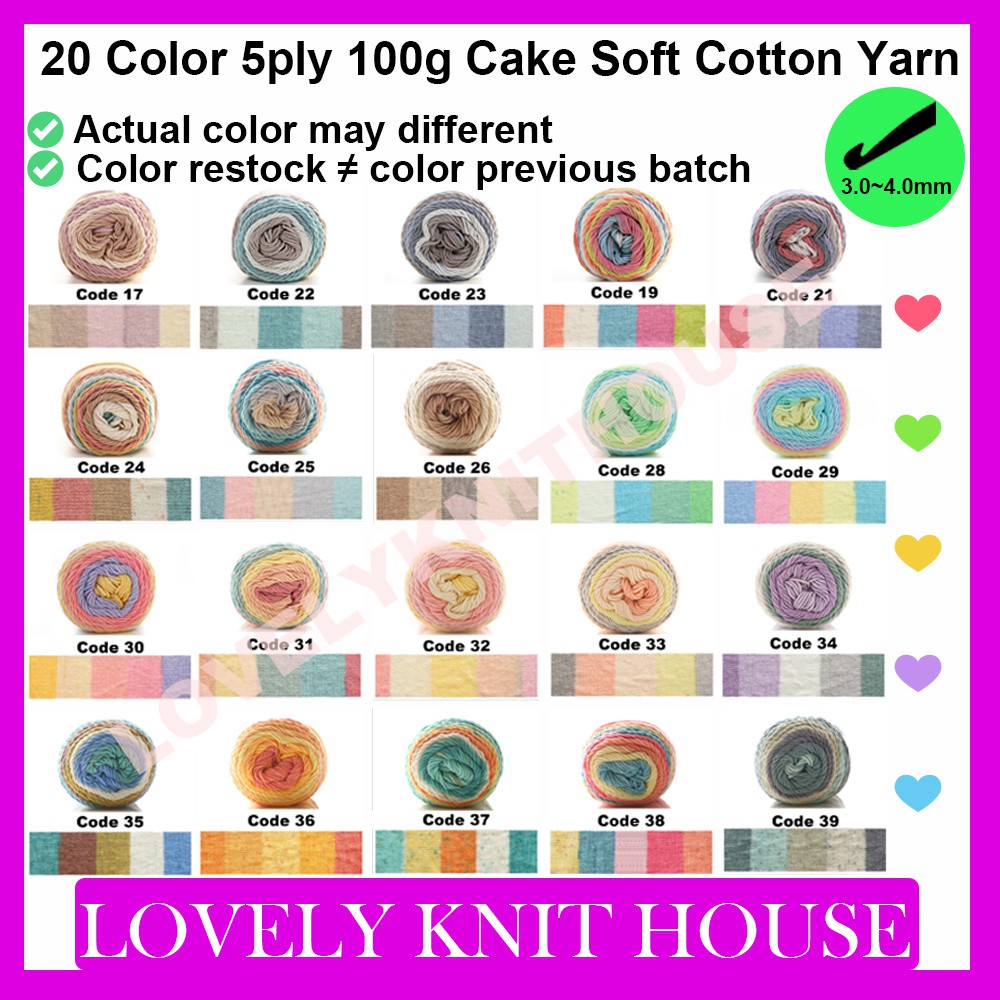 20 Color 5ply 100g Cake Yarn Cotton Yarn Crochet Colorful Rainbow Yarn Benang Warna Warni