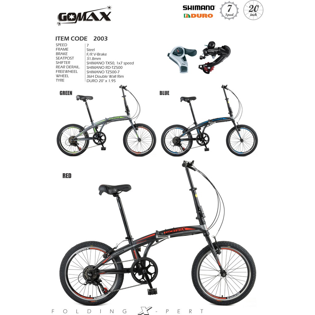 20" GOMAX Shimano Gear Folding Bike 7 Speed MURAH