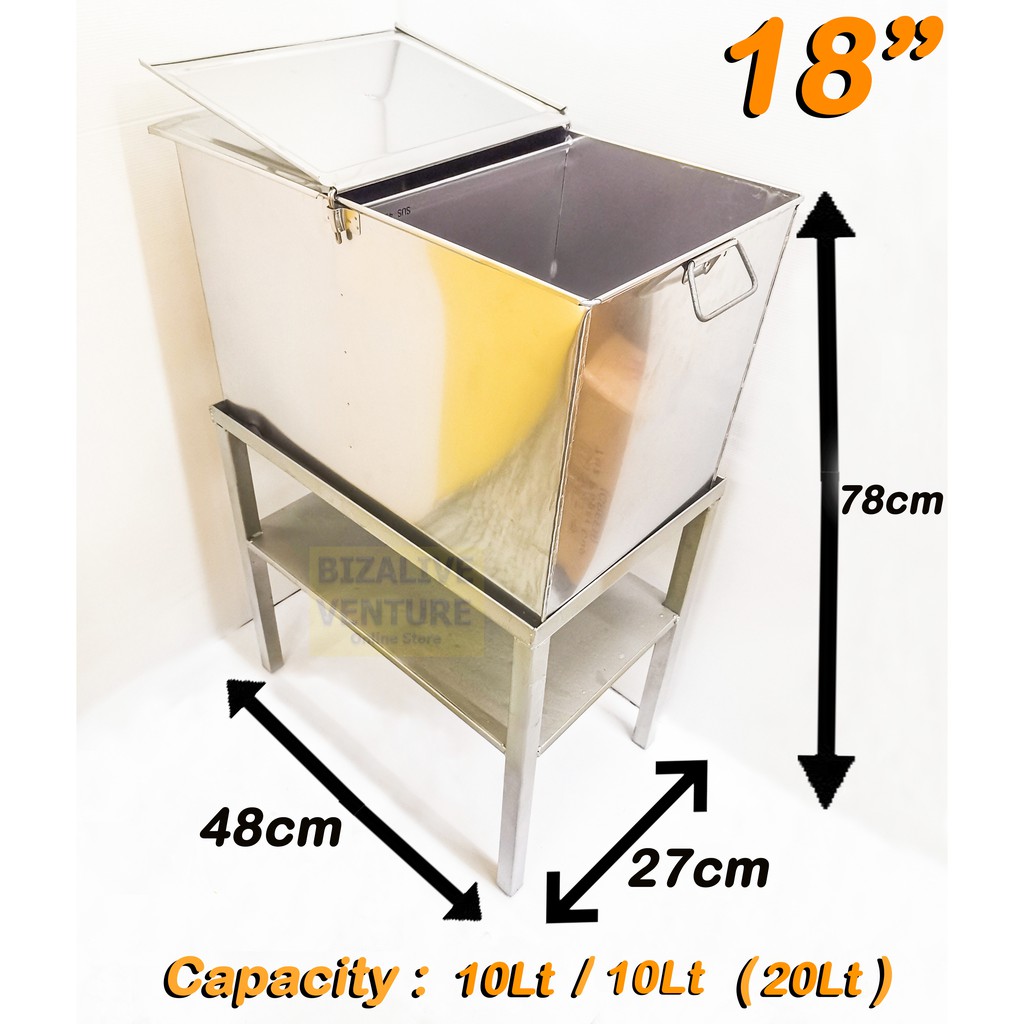 20 Lt(18")2 Side Stainless Steel Square Boiler Water Tank | Water Storage Kopitiam & mamak | Tong Bekas Masak Air Panas