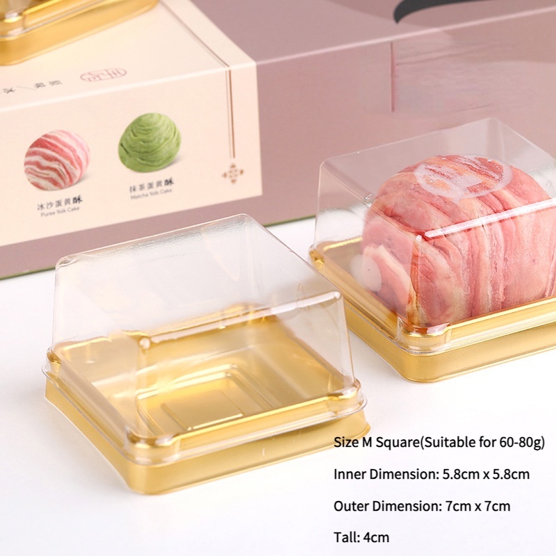 20 PCS Dessert Packaging Box Pastry Egg Yolk Puff Moon Cake Plastic Tray Casing with Cover Packaging Box Round Square Brownies Box