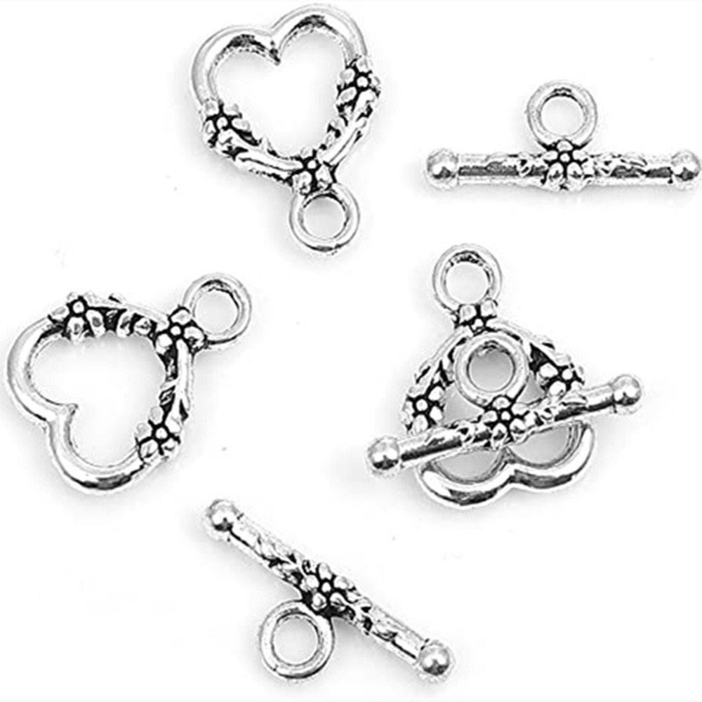 20 Sets Antique Heart Shaped Ring Hook Toggle Clasp Hooks Findings For Jewelry Making Competent Diy Bracelet Necklace