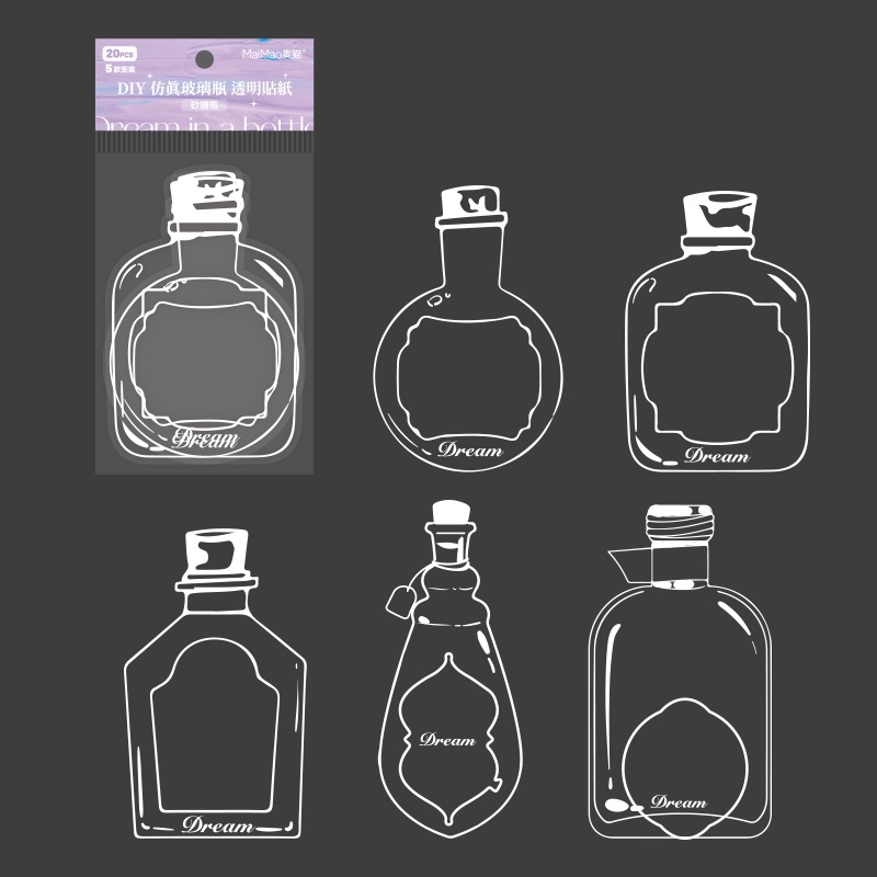 20 Sheets Transparent Glass Bottle Series Stickers Decorative DIY Material Waterproof PET Stickers