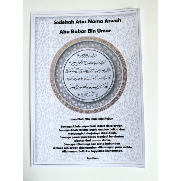 20 pcs A6 size Custom Name Sticker Tahlil / sticker yassin , wakaf yassin