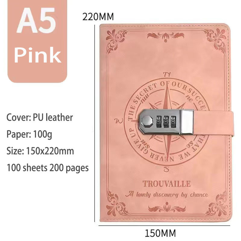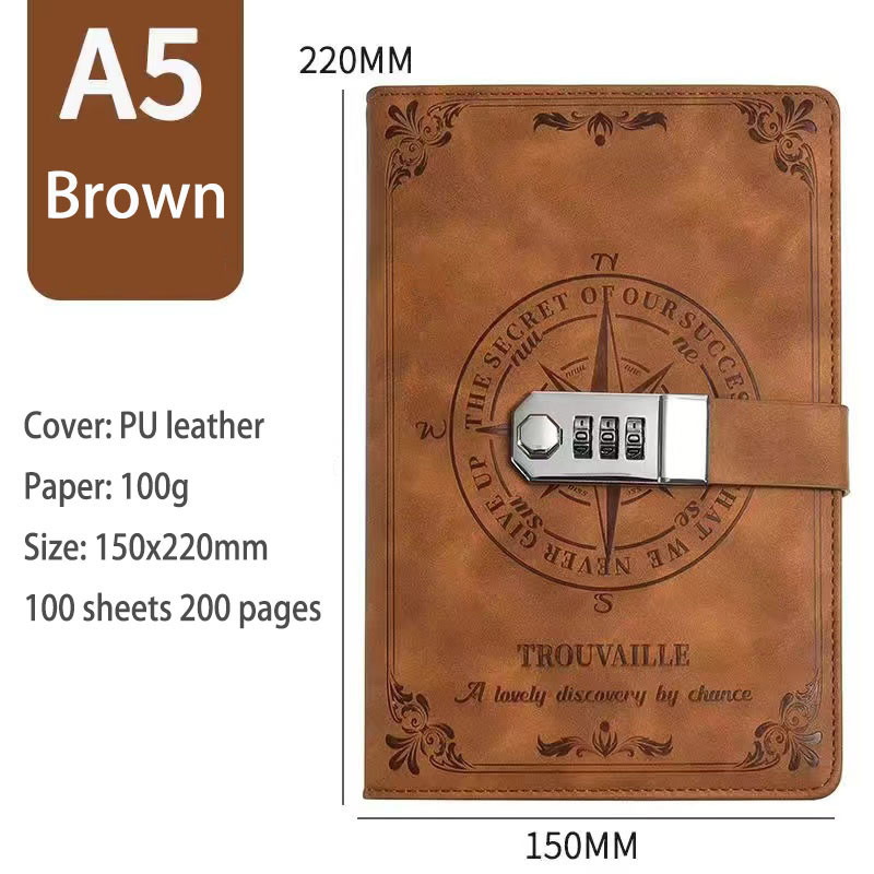 200 Pages A5 Notebook With Lock Diary Travelers Journal Notepad Agenda Planner European Retro Notebook Office School Supplies