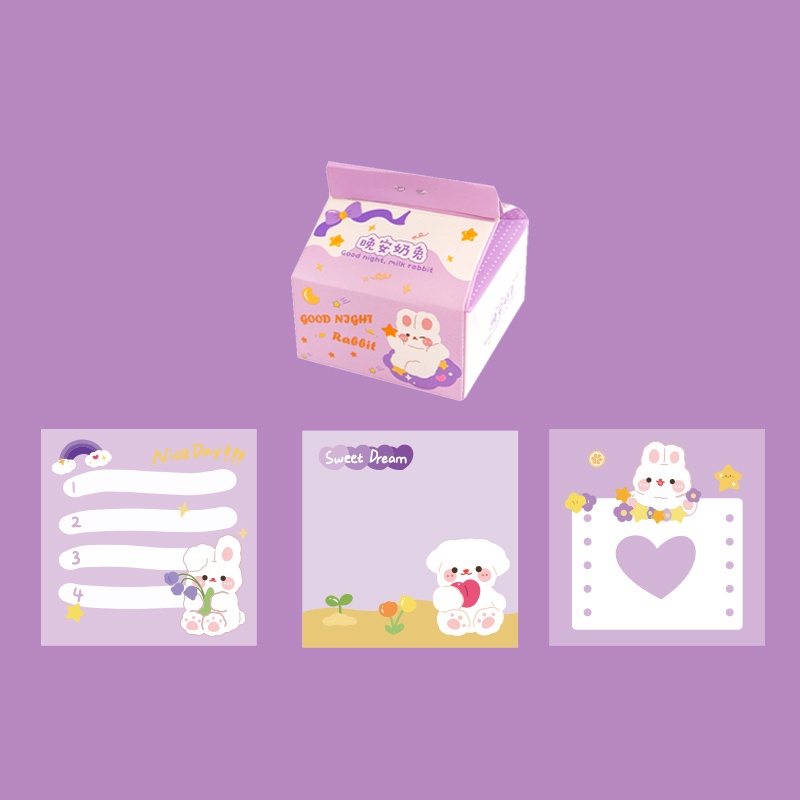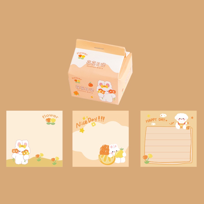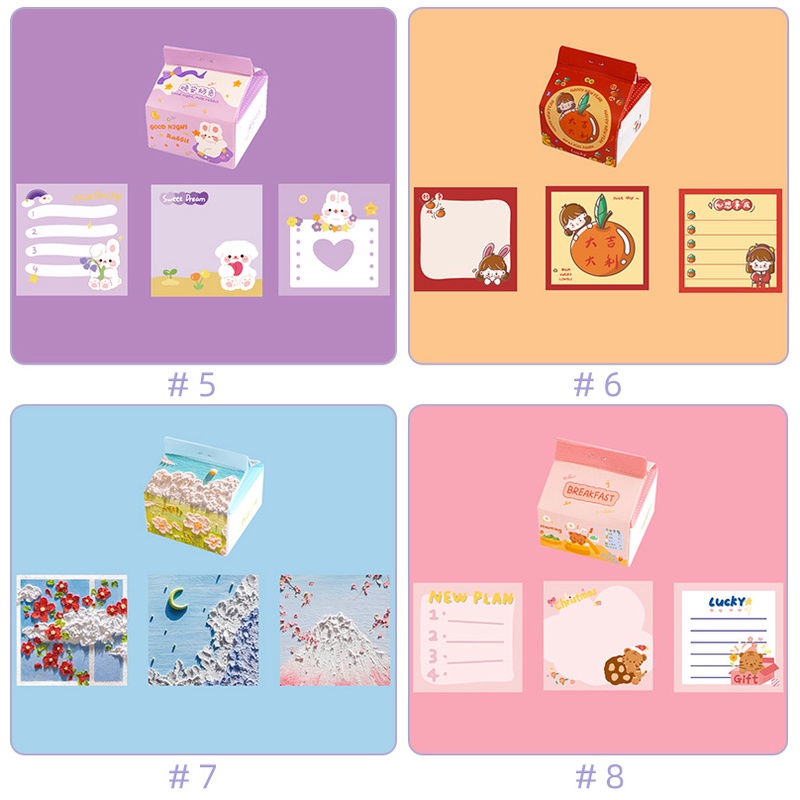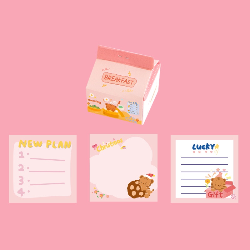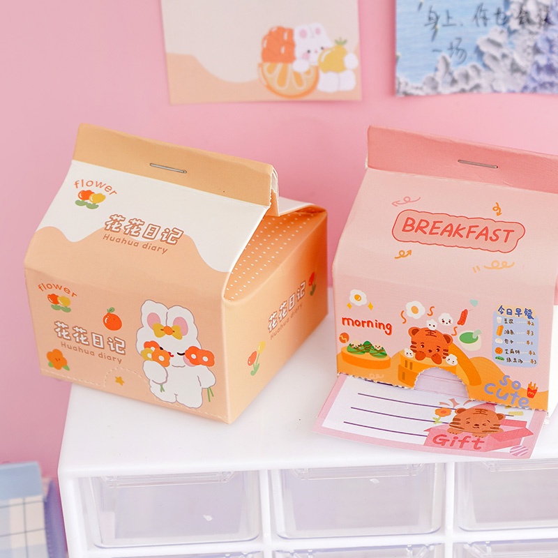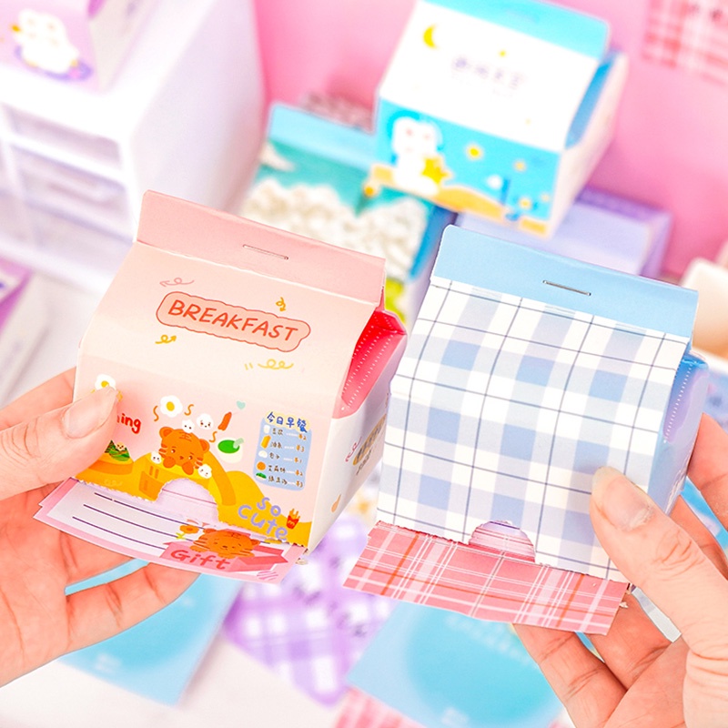 200 Sheets Cute Cartoon Milk Box Note Paper Student Creative Memo Paper Set