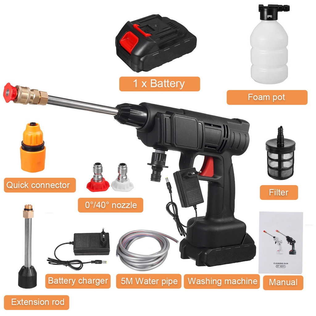 2000MAH Cordless Water Jet Portable High Pressure Car Washer Spray Water Jet Gun Machine Car Tool