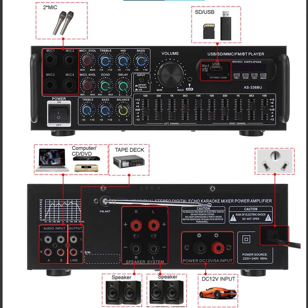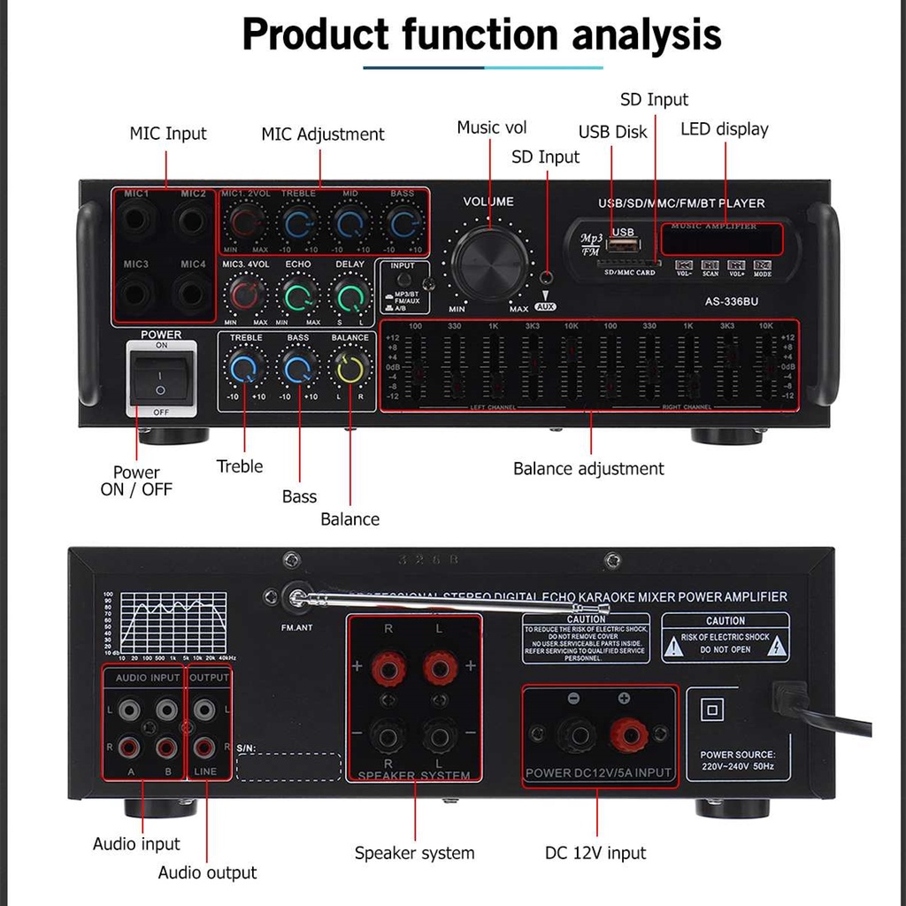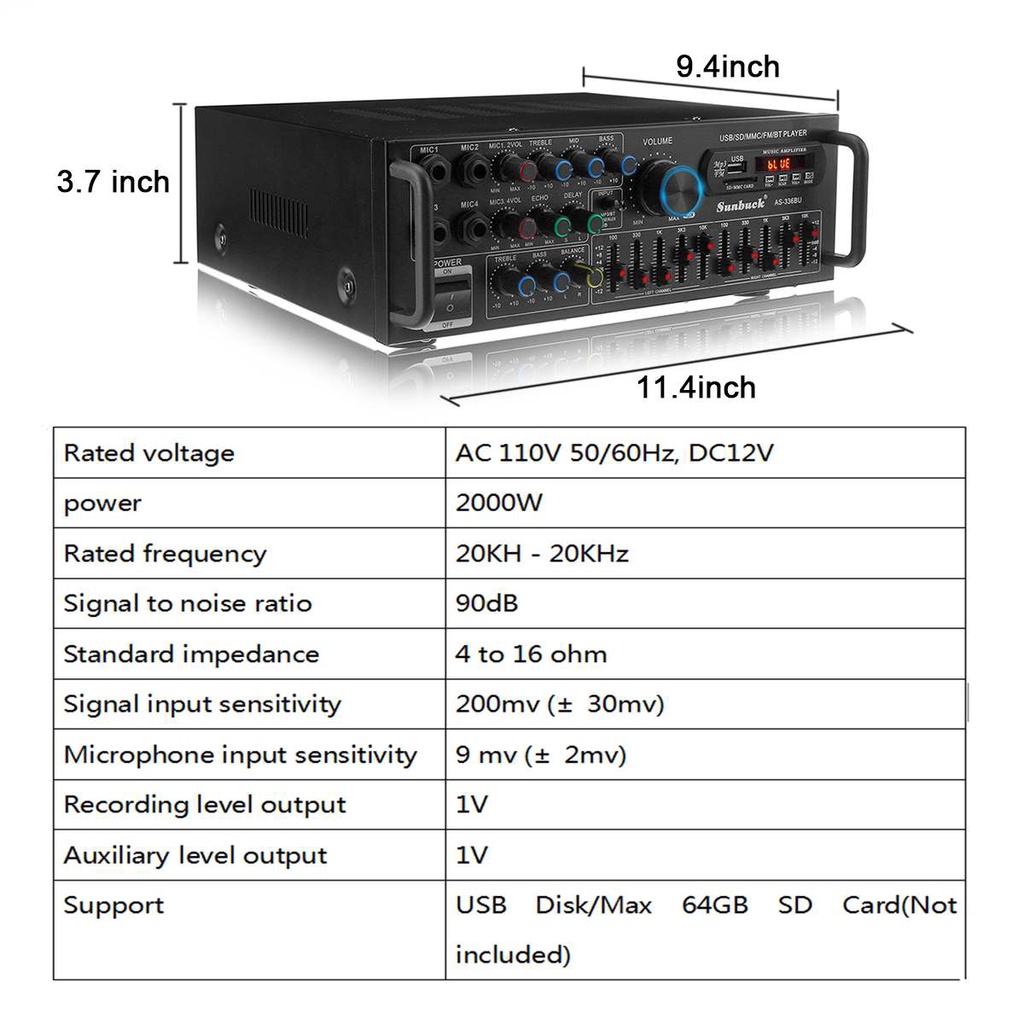 2000W Bluetooth Stereo Audio Amplifier Home Theater Karaoke USB SD AMP Surround Sound Digital Amplifier Remote Control
