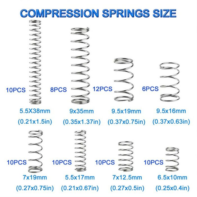 200pcs Steel Spring Tension Spring Compression Spring 20 Kinds Sizes Hardware Assortment Accessories Kit