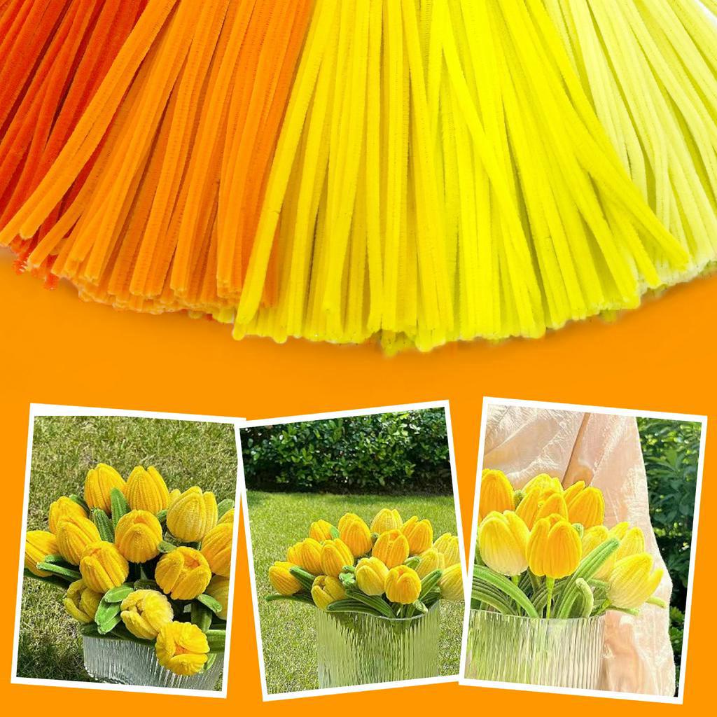 200pcs yellow series Pipe Cleaners Craft Chenille Stem, Orange Fluorescent Yellow gold Light Yellow ,High Quality Dense Fluff Art Chenille Stems pipe cleaners' bulk Craft Supplies