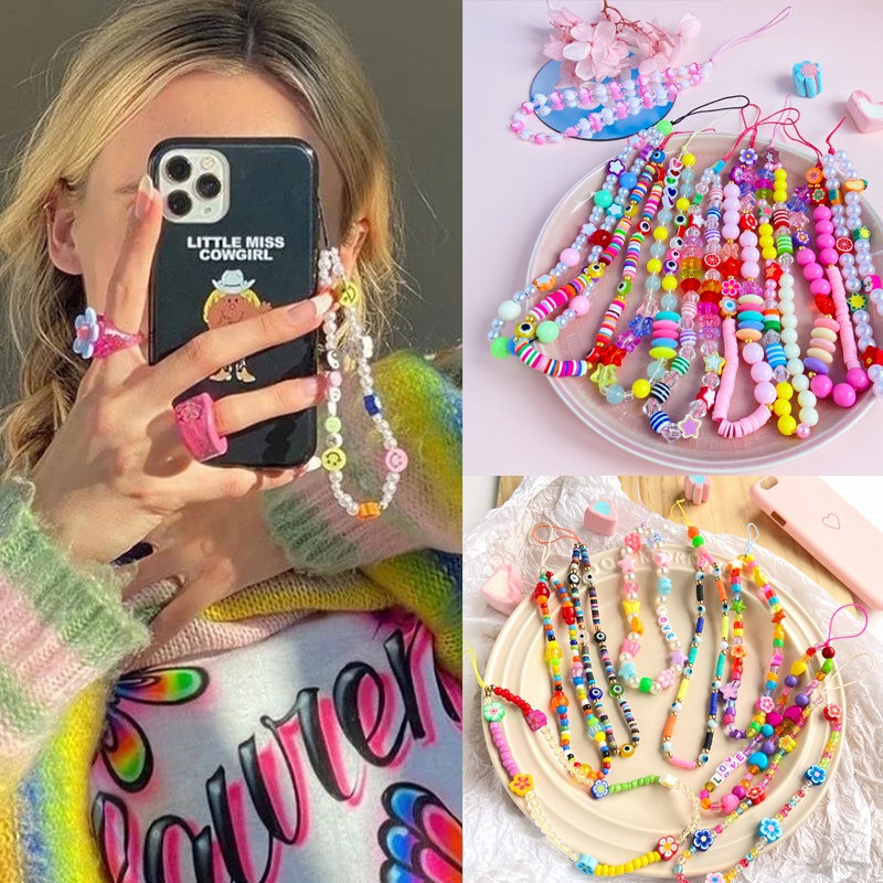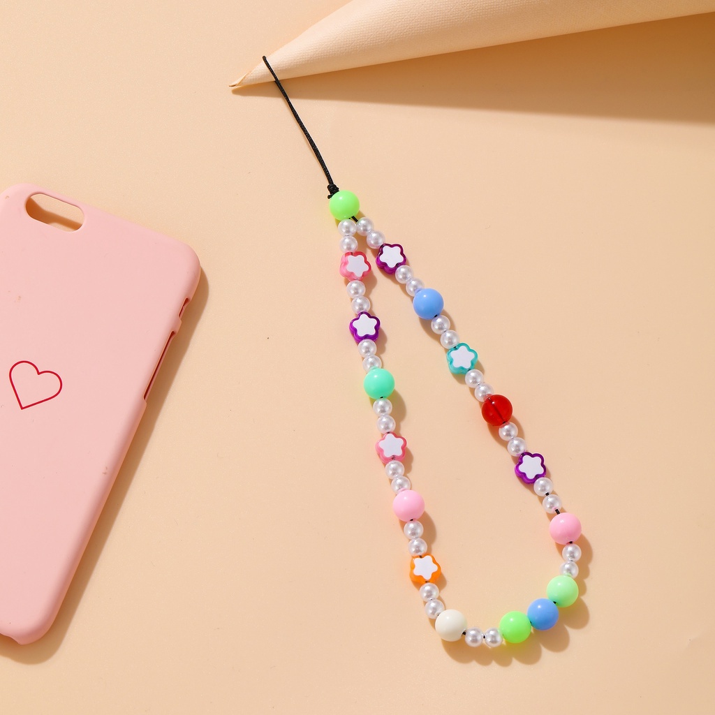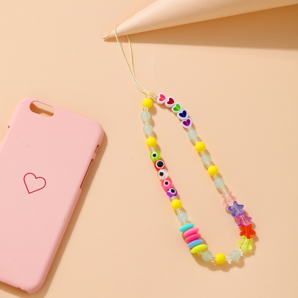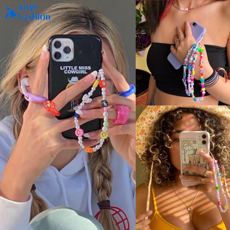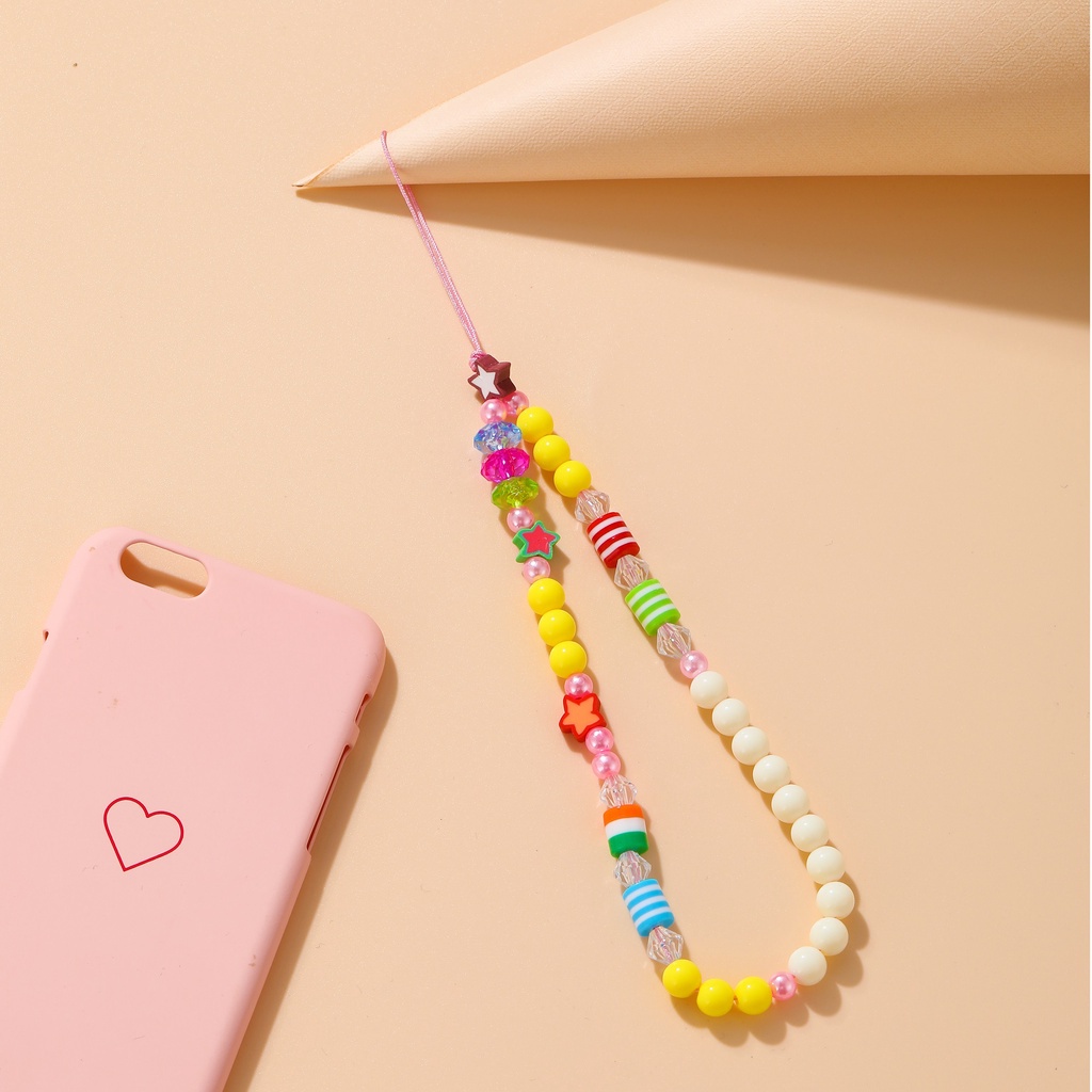 Dodder 2021 New Ins Trendy Colorful Smiling Beads Chain Cell Phone Chain Anti-lost Handmade Acrylic Cable Lanyard for Women