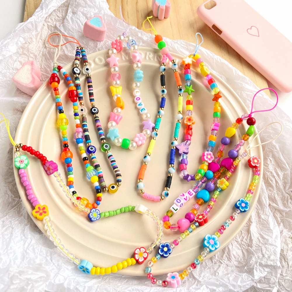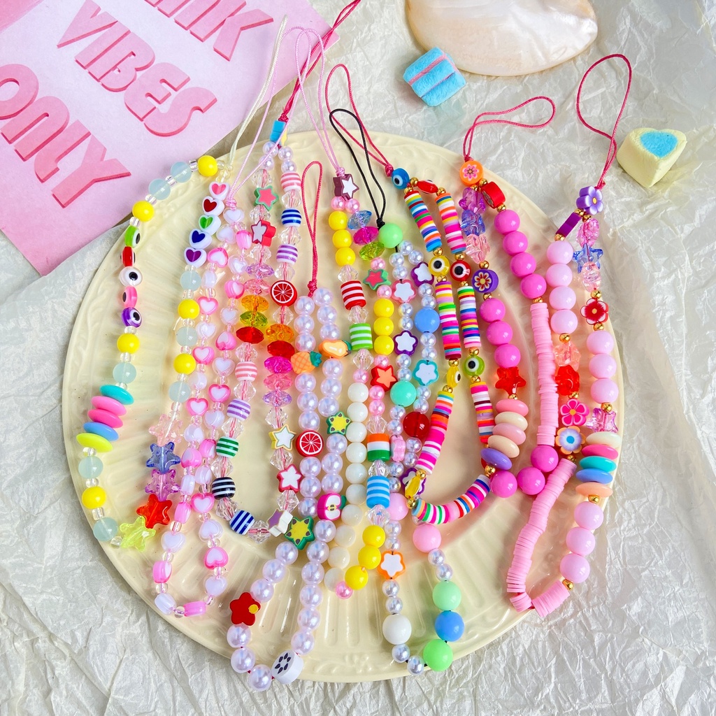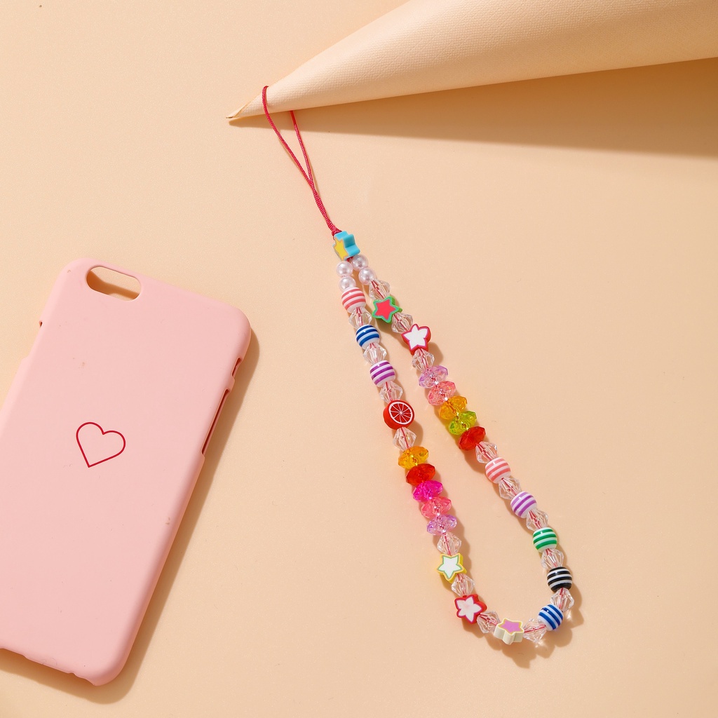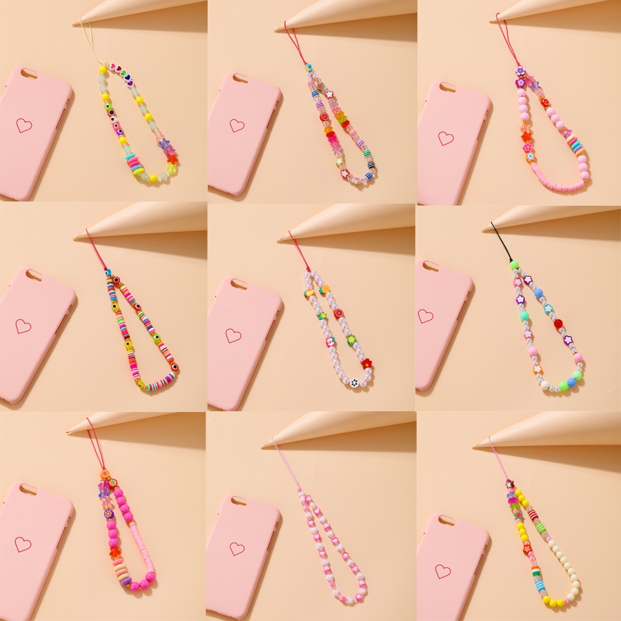 Dodder 2021 New Ins Trendy Colorful Smiling Beads Chain Cell Phone Chain Anti-lost Handmade Acrylic Cable Lanyard for Women