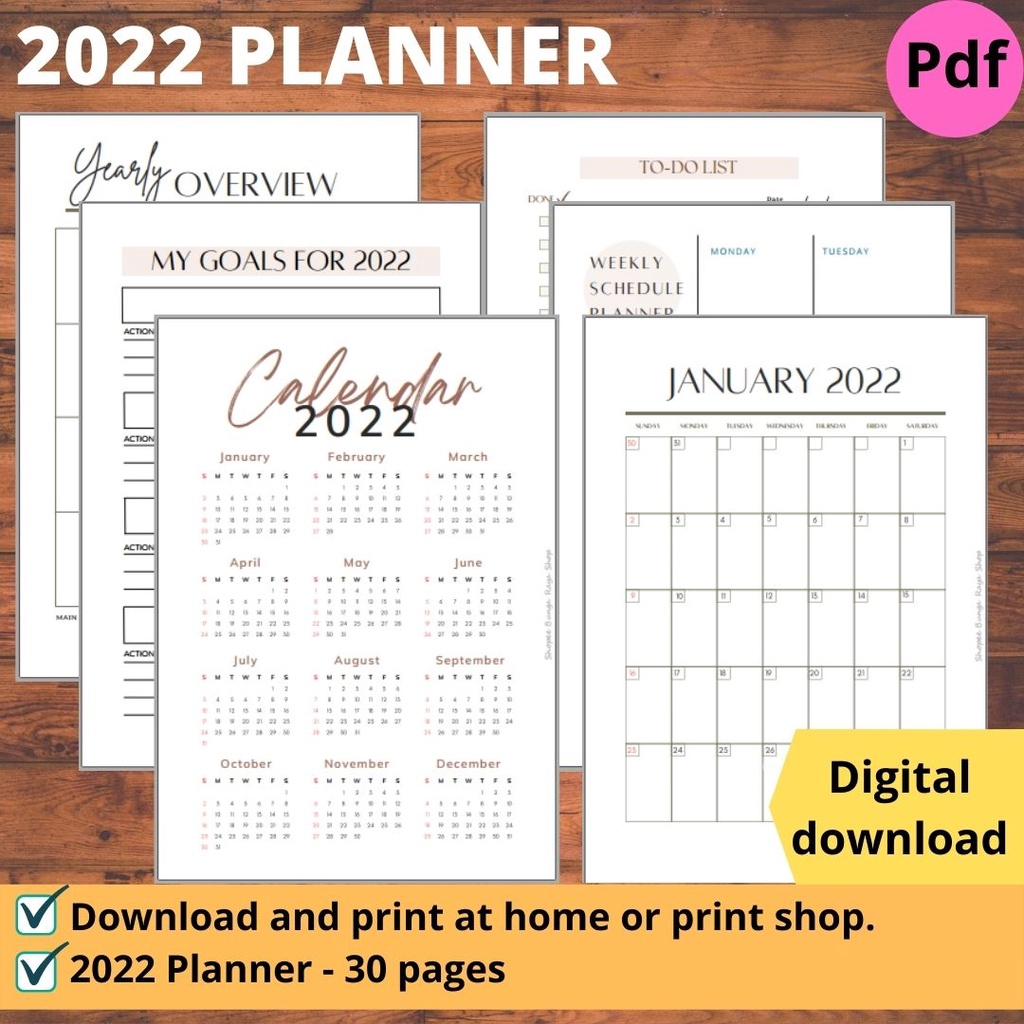 2022 Planner Calendar Printable PDF yearly monthly daily planner