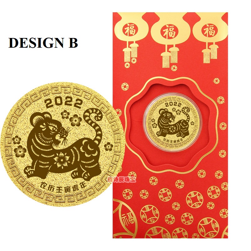 2022 Tiger Year Au999 Real Gold Coin Angpow Red Packet