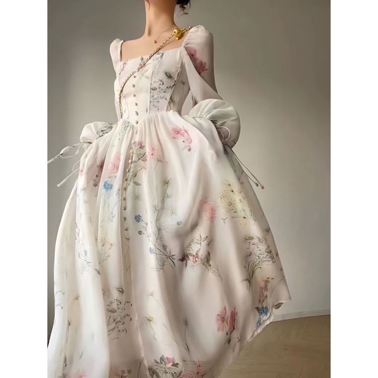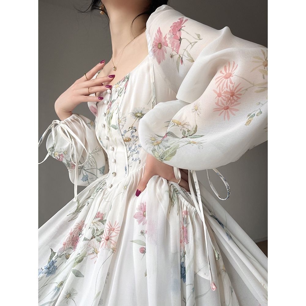 2023 New Temperament French Dress Fashion Versatile Slim Fairy Dress Retro Long Dress Women