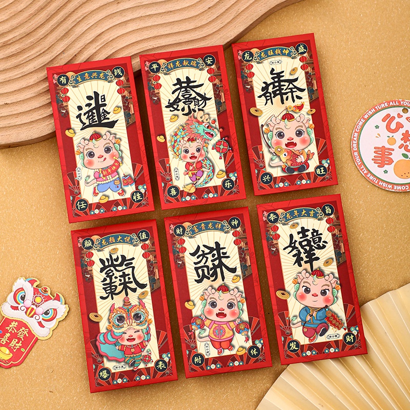 2024 Chinese New Year Red Envelope Dragon Year Lucky Red Pocket Money Envelope Dragon Red Pocket New Year Angpao
