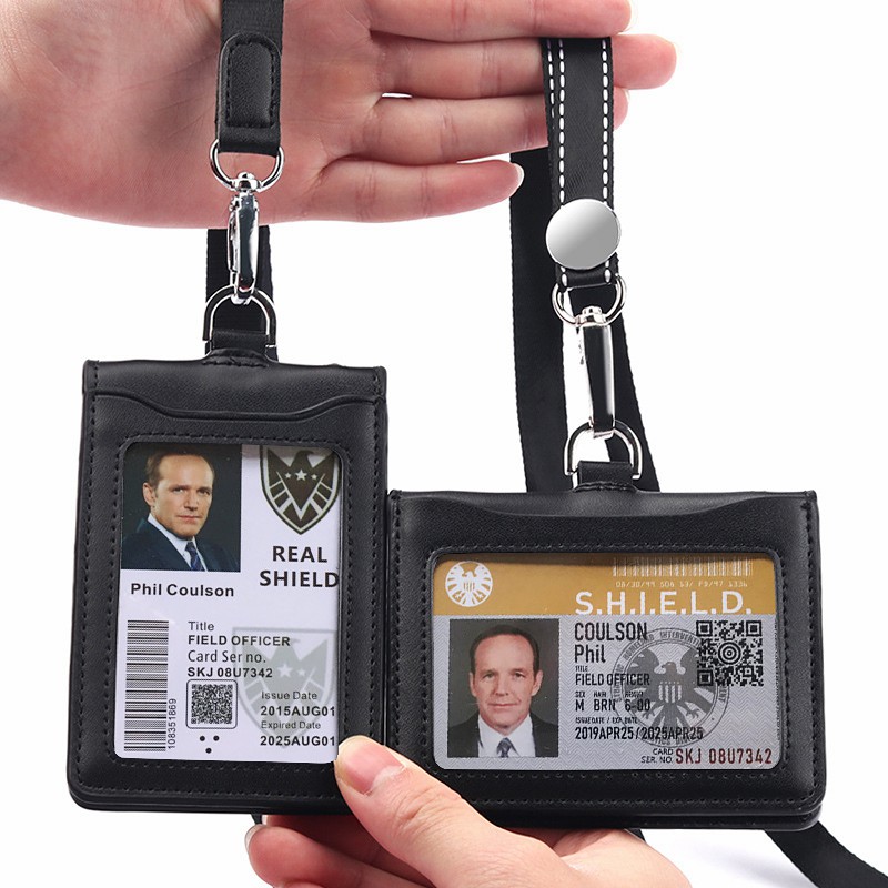2024 NEW Formal US Reporter Police Agent ID Badge Business Work Card Holder with Neck Lanyard Genuine Leather id card holders High Quality Office Supplies