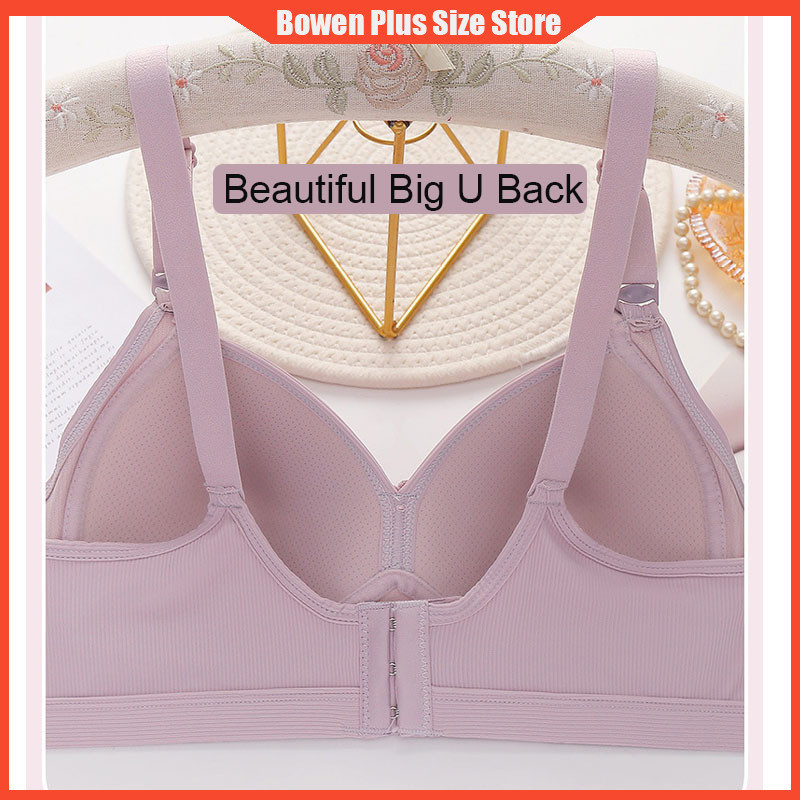2024 New Plus Size Women Bra without Steel Ring Sweat-Absorbent Breathable Beautiful Back Underwired Gathering Bra Support Adjustable Underwear for Women