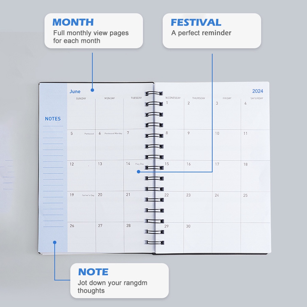 2024 Planner Academic Weekly&Monthly&Daily Planner Diary A5 Agenda Coil Book 100GSM Diary for Students School Office Stationery Supplies