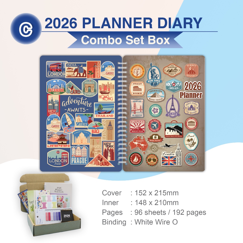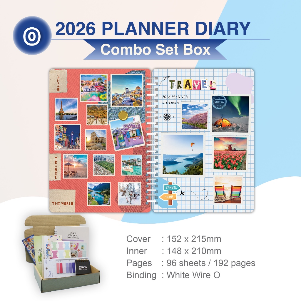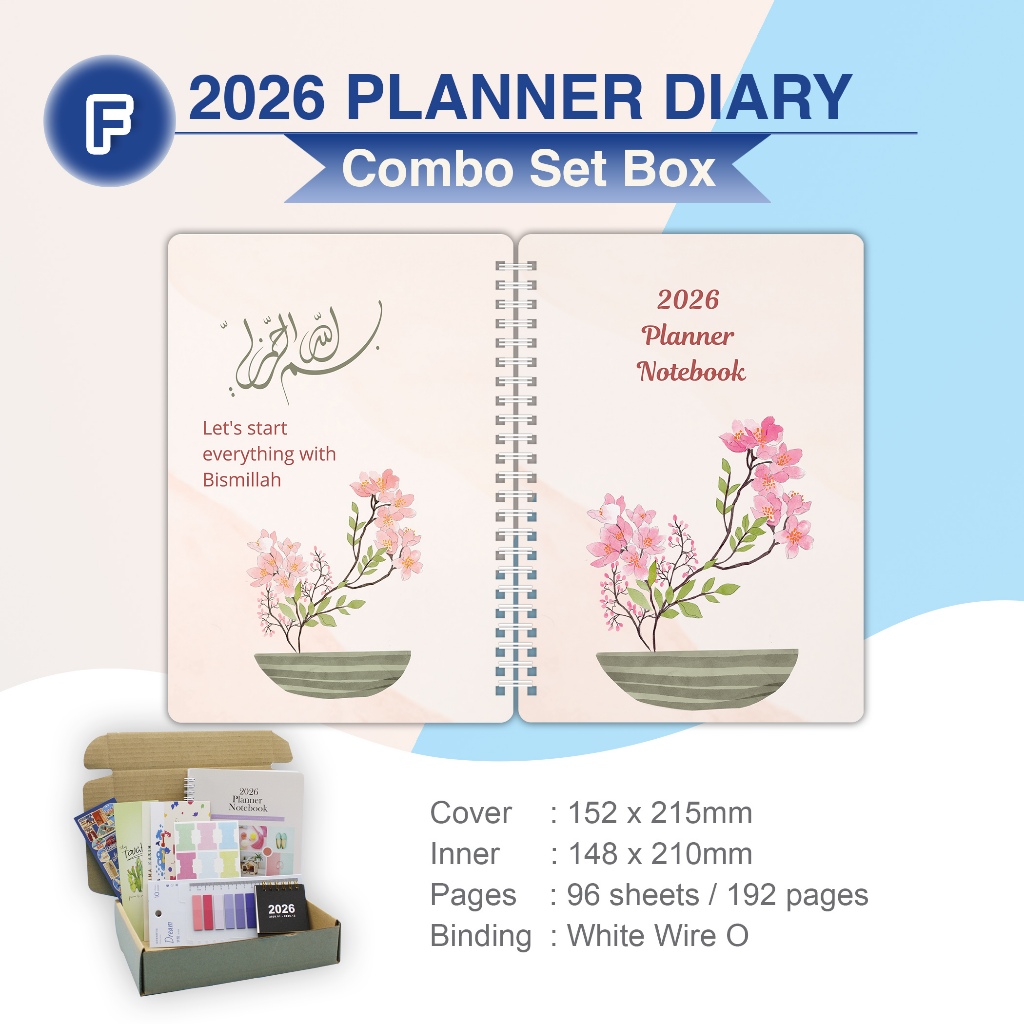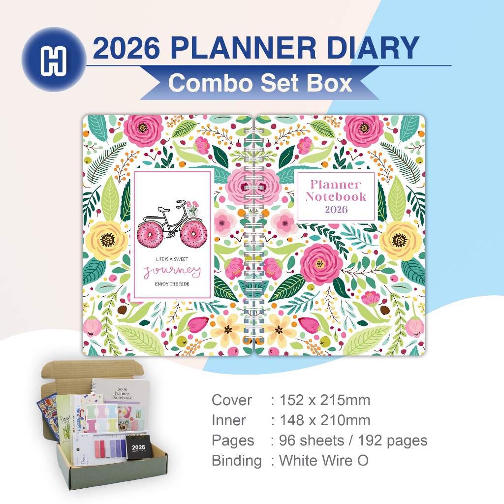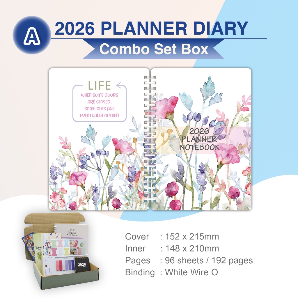 2026 A5 Wire O/Thread Sewn Buku Planner Hadiah in combo set box Malaysia (8 FreeGift) Cantik Planner Diary Notebook A5
