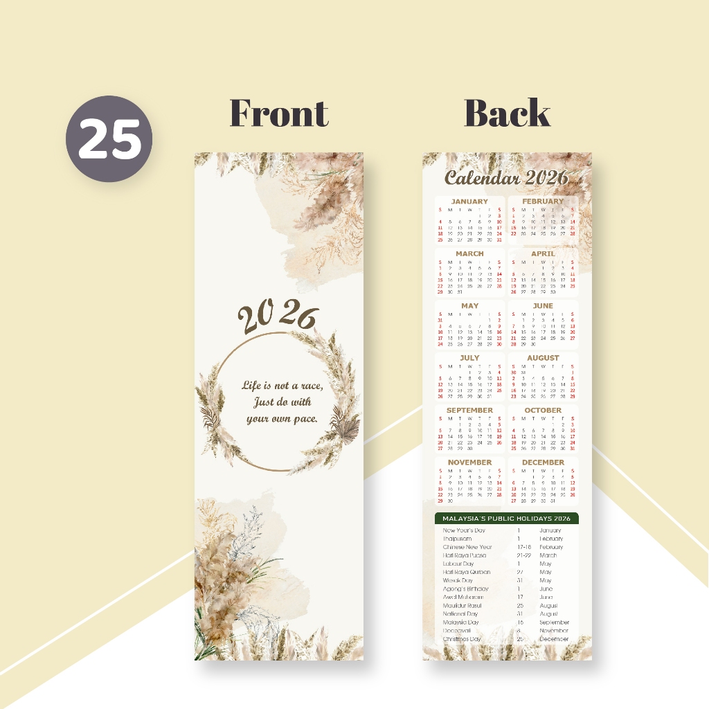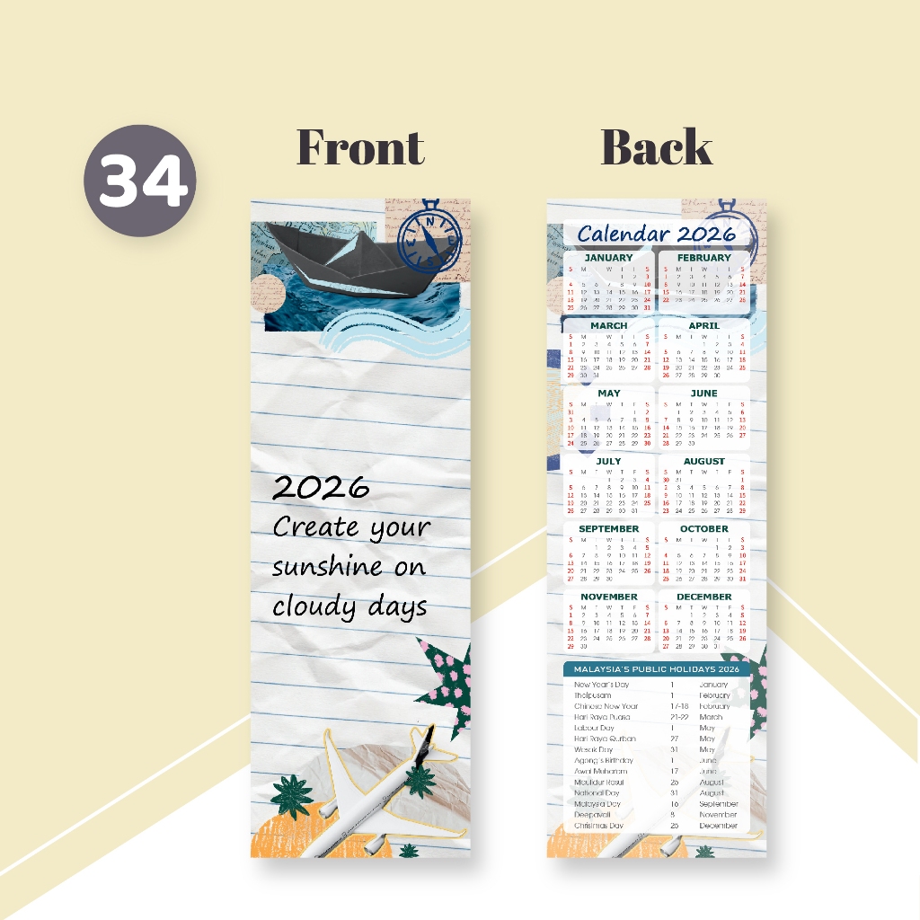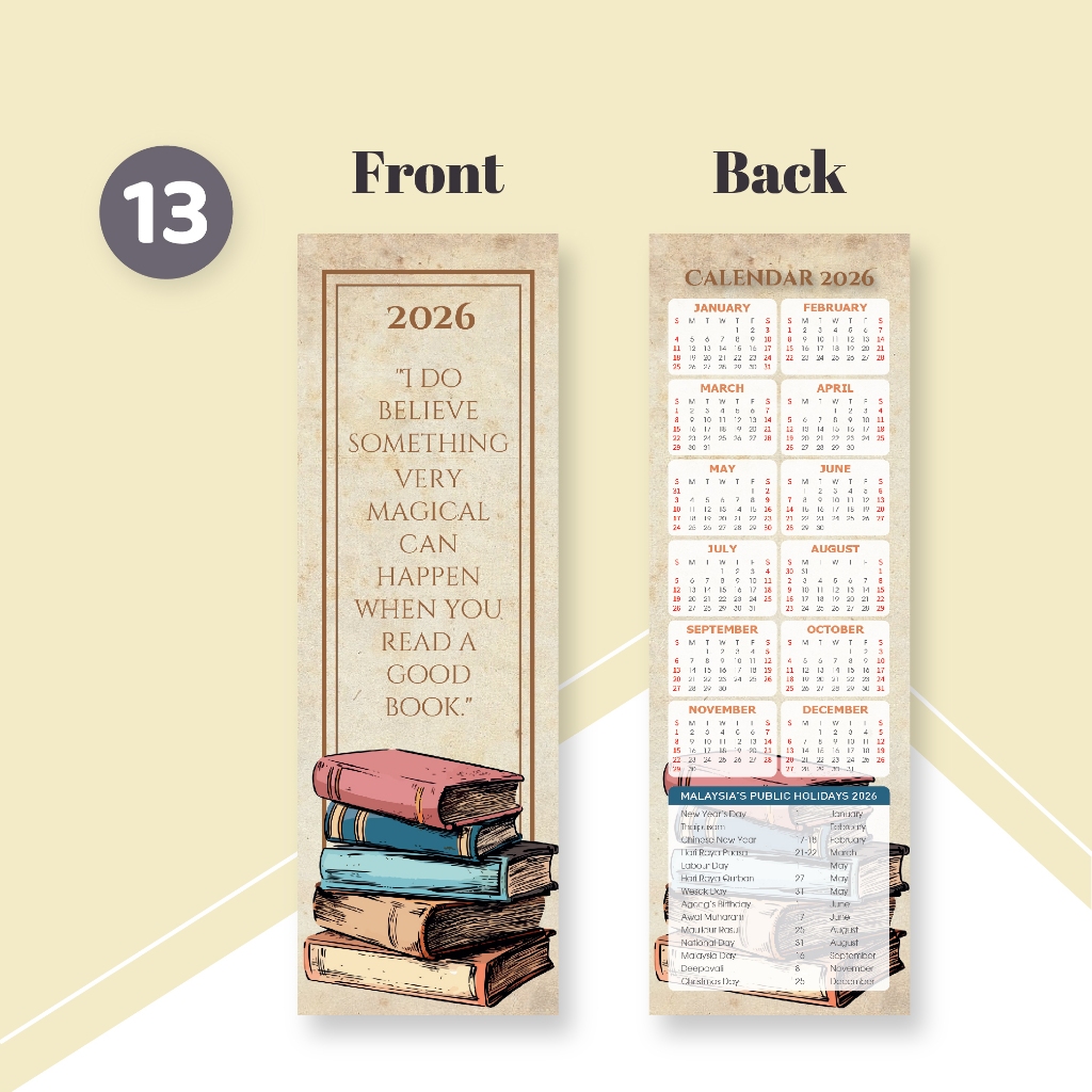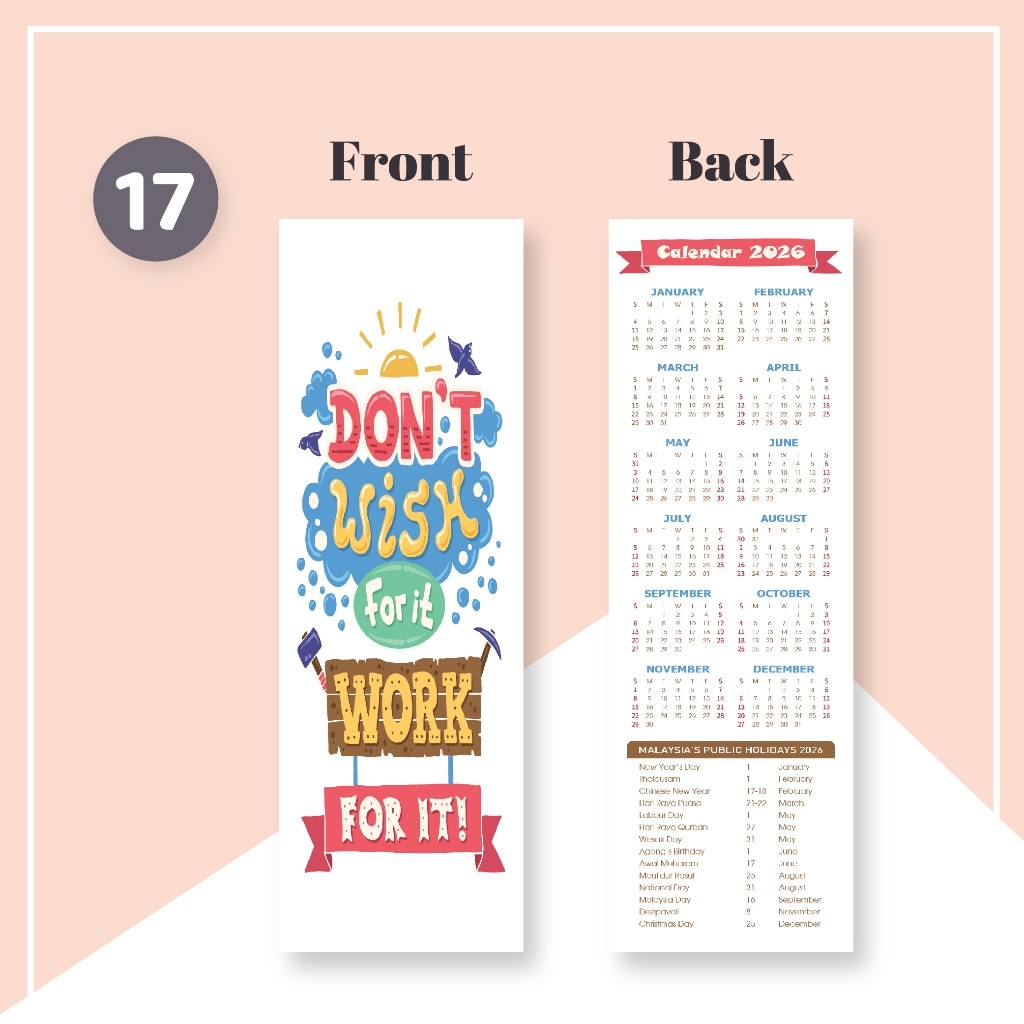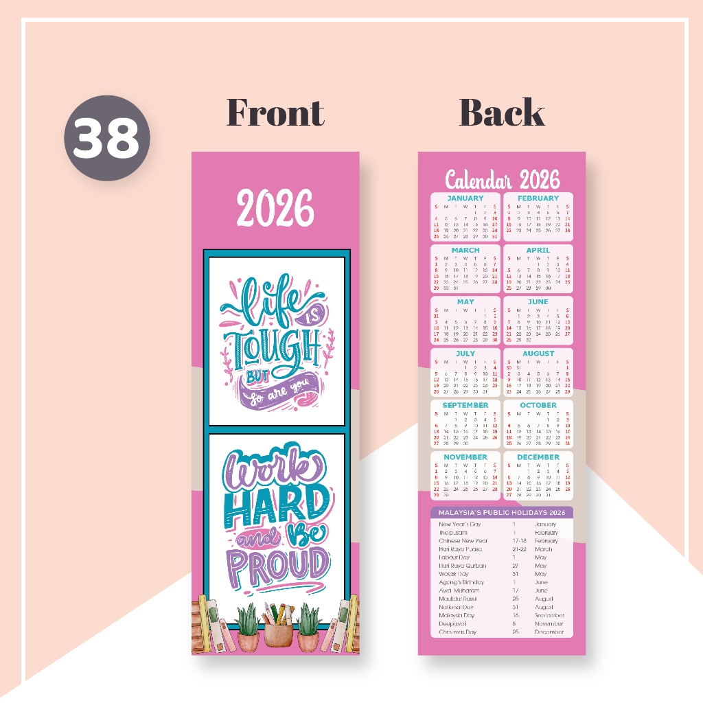 2026 Bookmark CALENDAR Penanda Buku kalendar with Public holiday DOORGIFT Teacher Day MURAH FREEGIFT MOTIVATE Quote