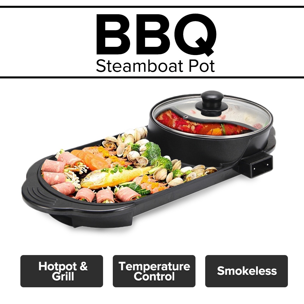 2025 Hericaine 2In1 Electric BBQ steamboat pot Grill Pan Dual Soup Hotpots Shabu Frying Pan Peruik Stimbot 55 / 71 cm