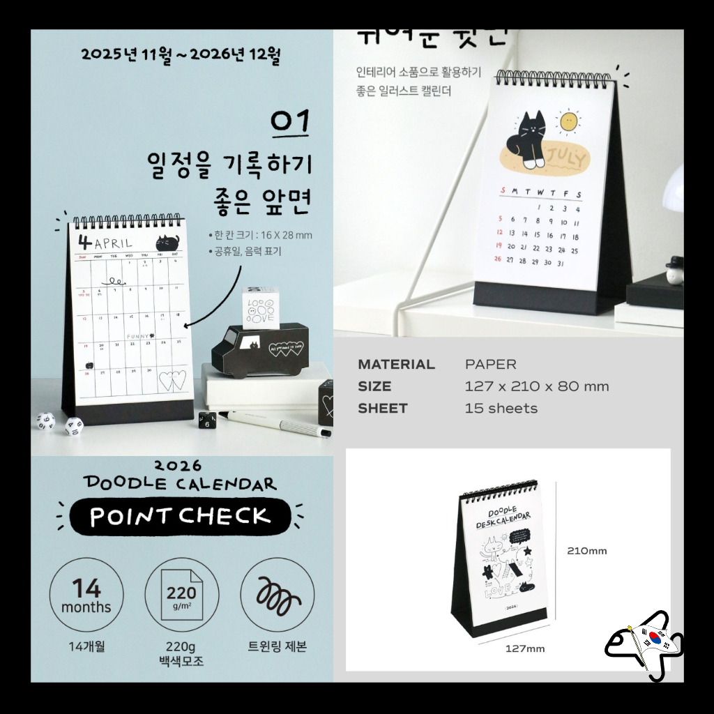 2026 Iconic Doodle Desk Calendar / 2026 Desk Calendar / 2026 Korean Cute Illustration Calendar