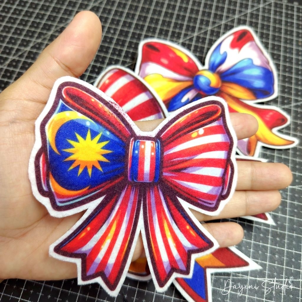 2025 MERDEKA!! Brooch Bow Felt | Kerongsang Ribbon Hiasan Baju | Prop Kemerdekaan | Bendera Jalur Gemilang | Hadiah Gift