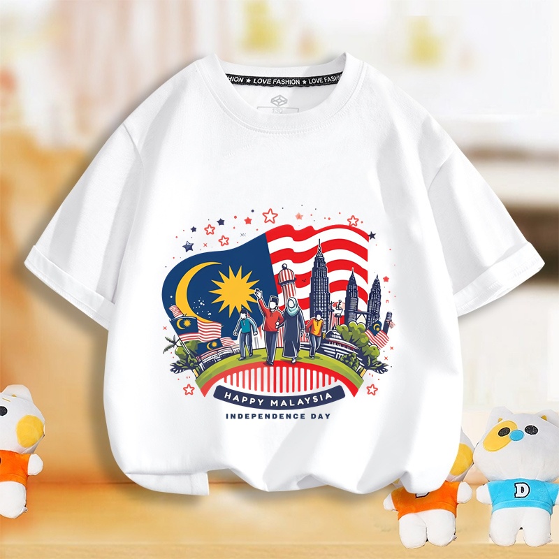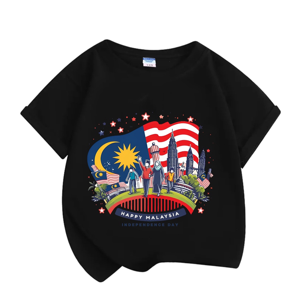 2026 Malaysia Flag T-Shirt Anak Dewasa Hari Merdeka Round Neck Cotton Tee Shirt Independence Day Unisex Short Sleeve Tops