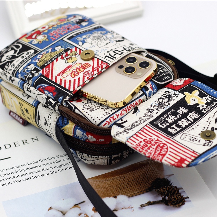 2026 New Style Canvas Small Bag Messenger Bag Mobile Phone Bag Crossbody Small Bag Female All-Match Retro Japanese Style Small All-Match Cute Shoulder Change Mobile Phone Bag Portable Small Shoulder Bag Mini Small