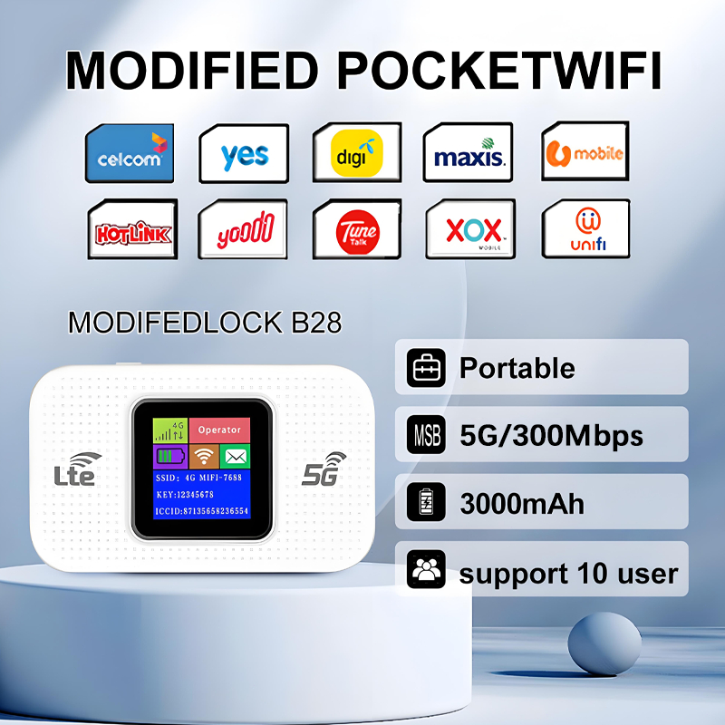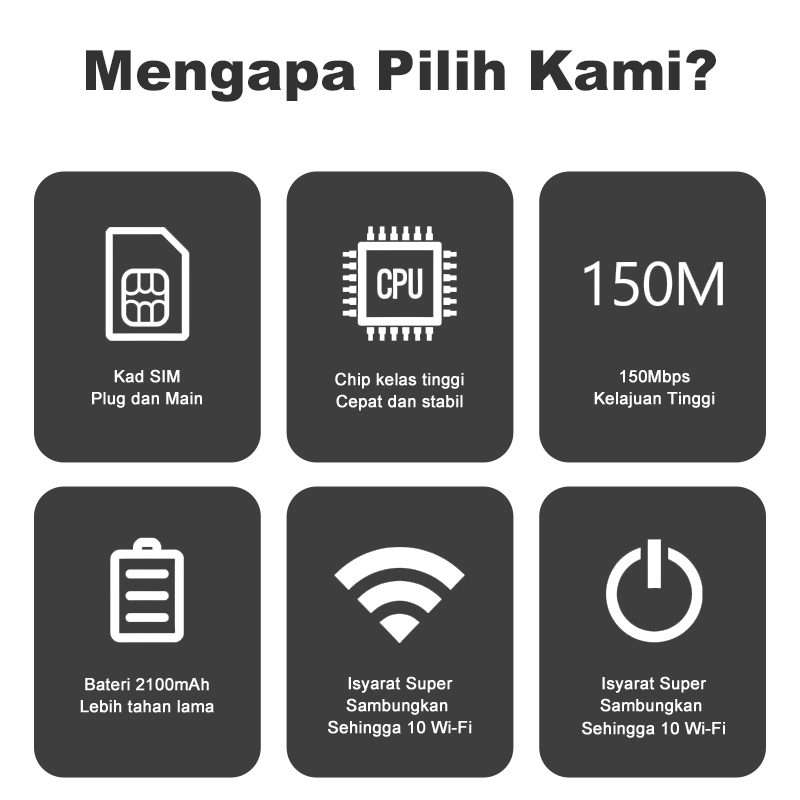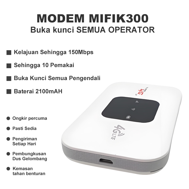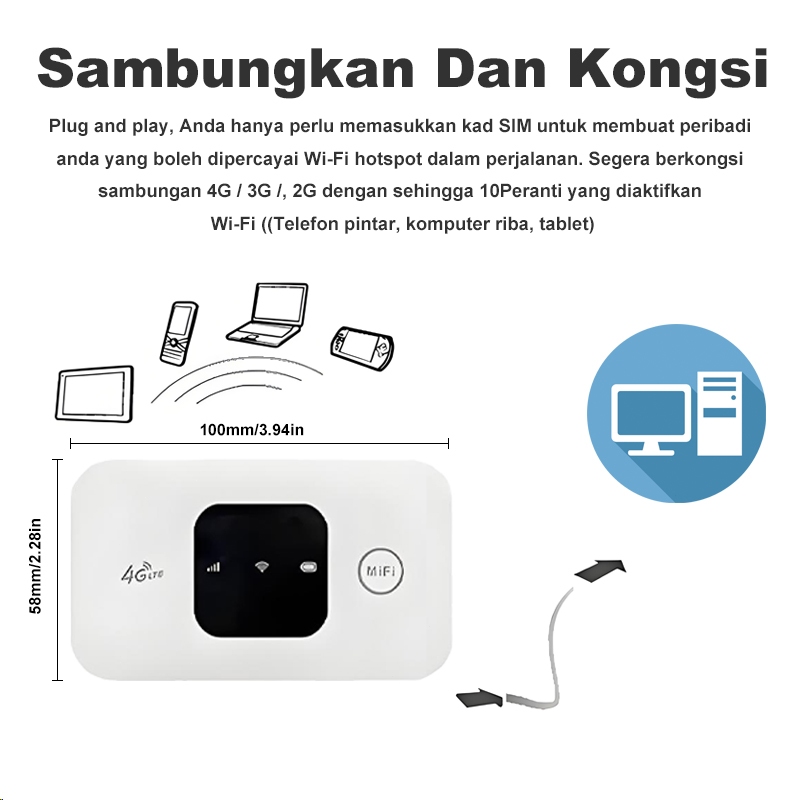 Pocket WiFi 4G LTE Rumah dan Kereta Hotspot Mudah Alih Sokong Kad SIM Sambung Hingga 10 Peranti