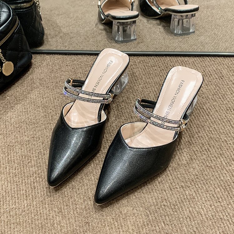 2025 Raya Local Ready Stock Rhinestone Belt Pointed Chunky Sandals Elegant Fashion Muller Single Shoes Women Shoes