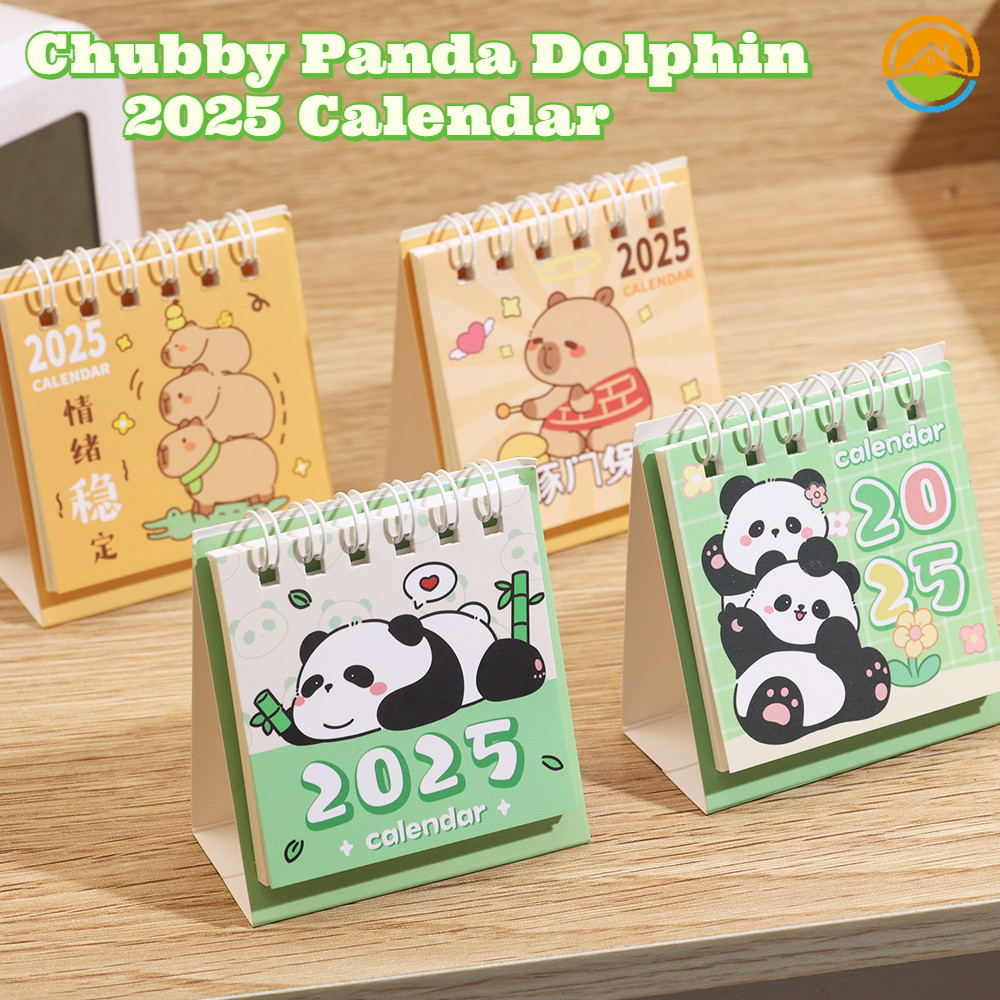 2025 Vertical Flip Modern Simple Practical English Calendar - Cute Fat Panda, Bamboo, New Year's Blessing, Dolphin Pattern Calendars