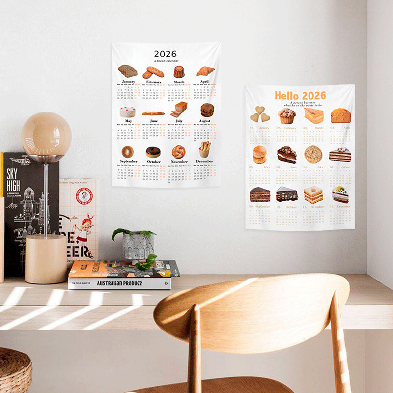 2026 Simple Wall Calendars Bread Coffee Pattern Hanging Cloth Ins Bedroom Calendar