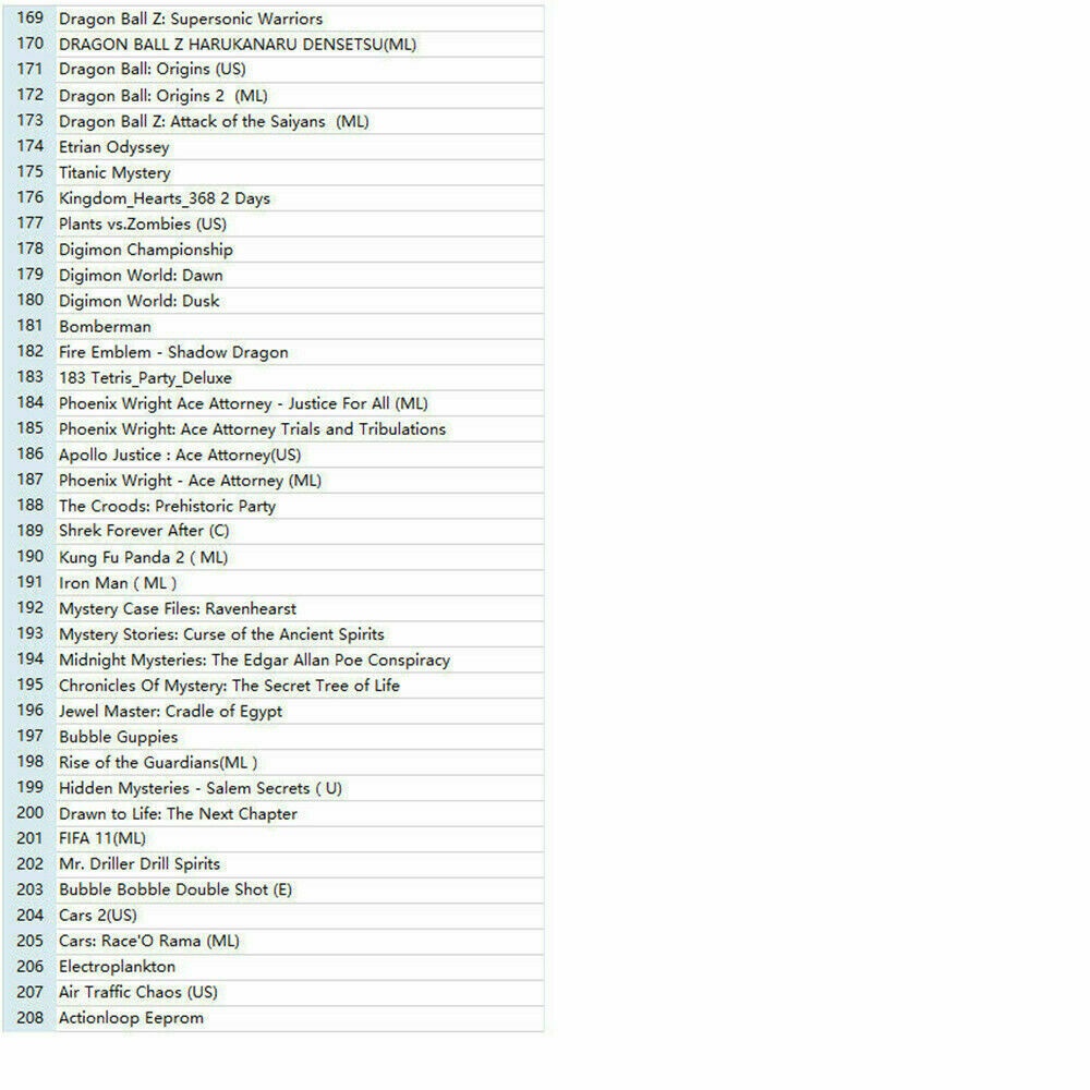 208 in 1 Game Card Cartridge Multicart for Nintendo DS NDS NDSL NDSi 2DS 3DS