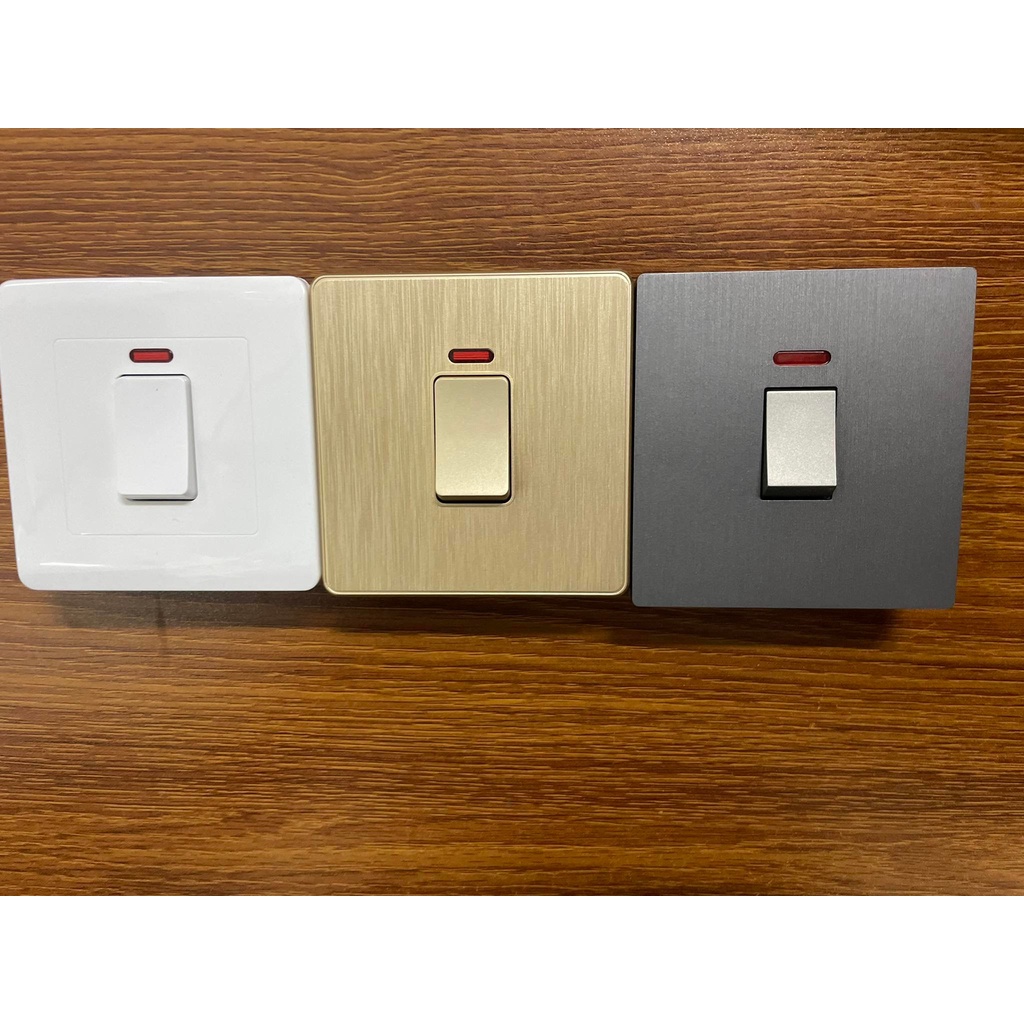 20A DOUBLE POLE SWITCH / 1 GANG WATER HEATER OR AIR-COND SWITCH WITH NEON INDICATOR GOLDEN WHITE GREY SWITCHES