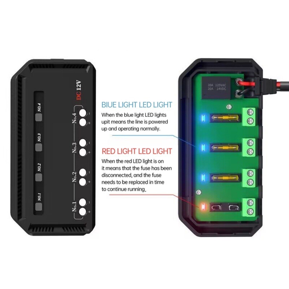20A Motorcycle Fuse Block with Relay Box Kit Automotive Fuse Block with 4 Circuits Mini Blade Fuse Holder 12 V Distribution Fuse Terminal Block