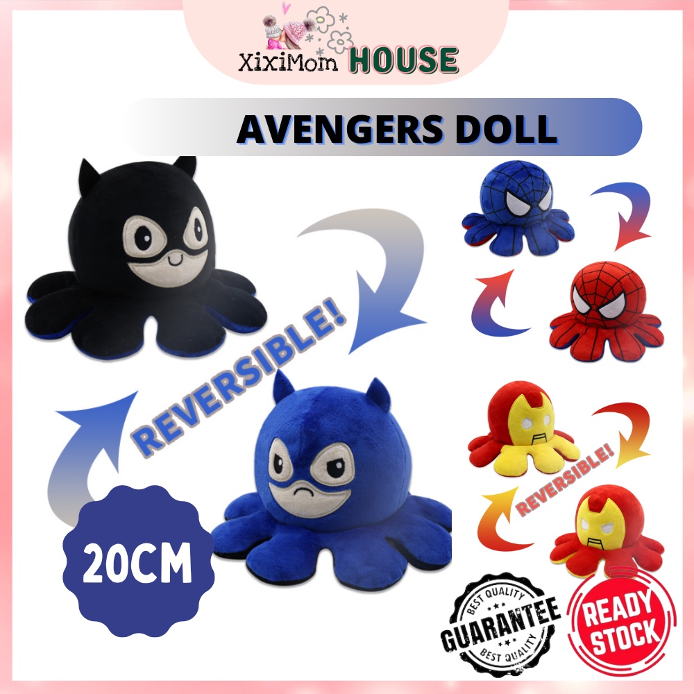 20CM Spiderman Iron Man Batman Flip Octopus Doll TikTok Viral Reversible Double-sided Octopus Toy Plush Patung Dua Sisi