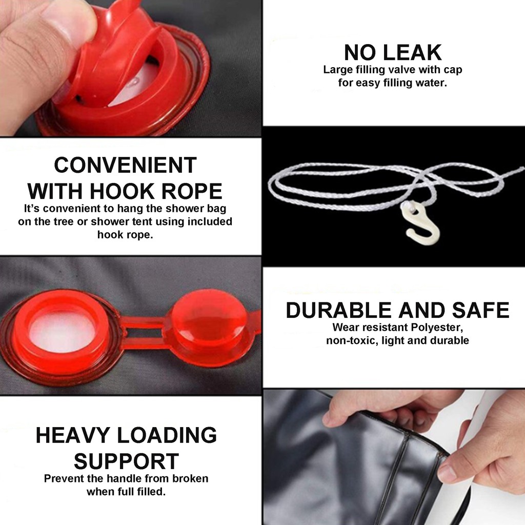 20L Portable Shower Bag Outdoor Portable Shower Bathing Bag PVC Water Bag Storage Travel Hiking Picnic Camping